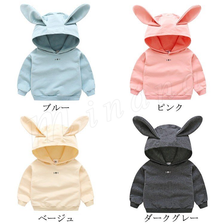 うさぎ耳付き プルオーバーパーカー プルオーバー パーカ 子供 長袖 パーカー トレーナー フード付き スウェットパーカー スウェット トレーナー 男