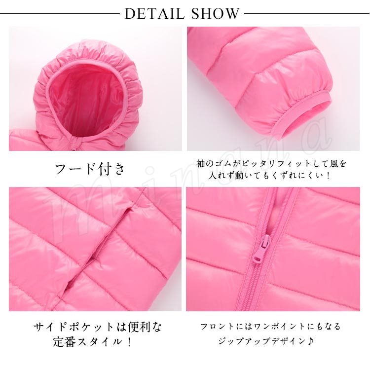 | 秋冬の定番!中綿入りコートが登場! 子供たちの体型に合わせて中綿の量の細心の注意を払い、しっかりとした保温性を持ちながらシルエットを壊さず、動きを邪魔しない絶妙な量の綿が詰められております。 寒い冬を快適に過ごせる。いつも温もりを与える。 | |