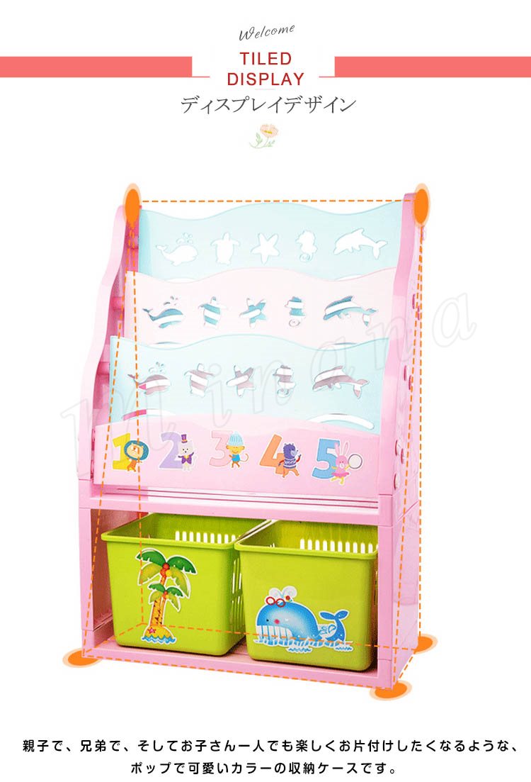 | 1台で絵本とおもちゃが収納できる! どうしても散らかりやすい絵本とおもちゃ・・・・これ一台でカバーできるので、楽しくお片付けができちゃいます。 親子で、兄弟で、そしてお子さん一人でも楽しくお片付けしたくなるような、ポップで可愛いカラーの収納ケースです。 | |