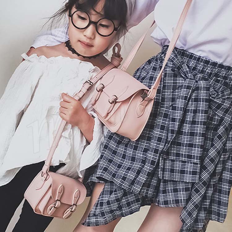 キッズ 女の子 ガール ショルダーバッグ カバン 鞄 かばん ショルダー 肩掛け ななめ掛け ダブルバックル 無地 お揃い シンプル ポシェ