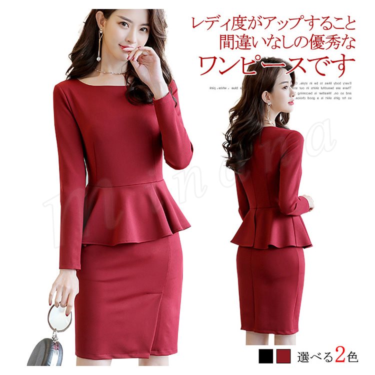 レディースワンピース フォーマルワンピース タイトワンピース 長長袖 スーツワンピース おしゃれ ショート丈 デート エレガント 大人 上品 女子会
