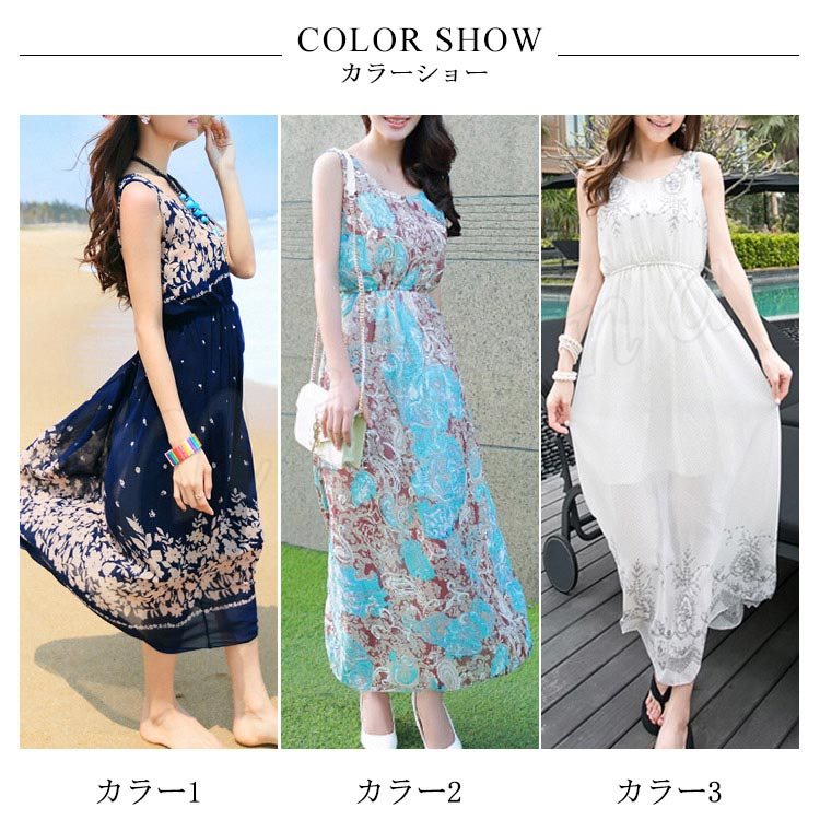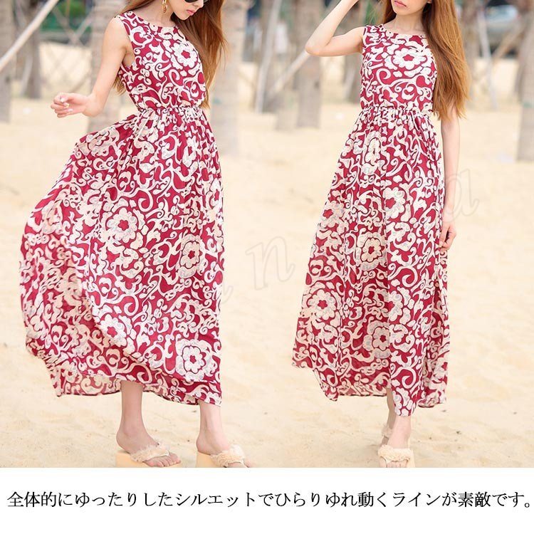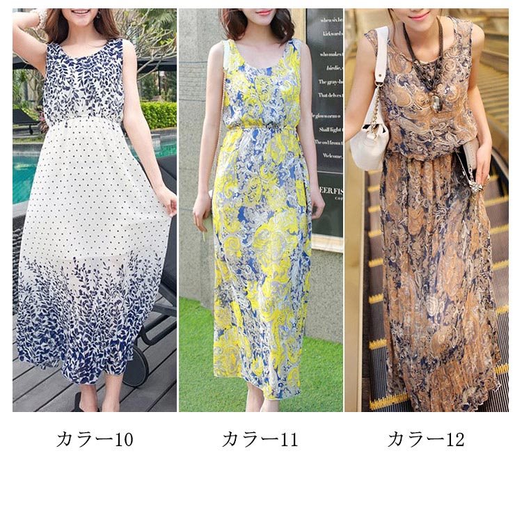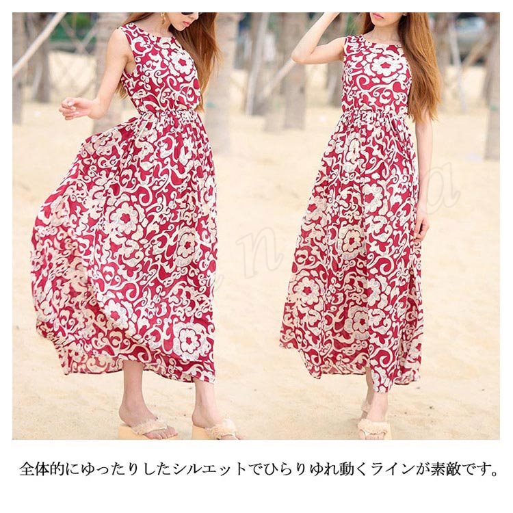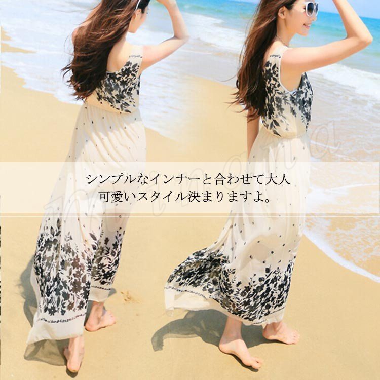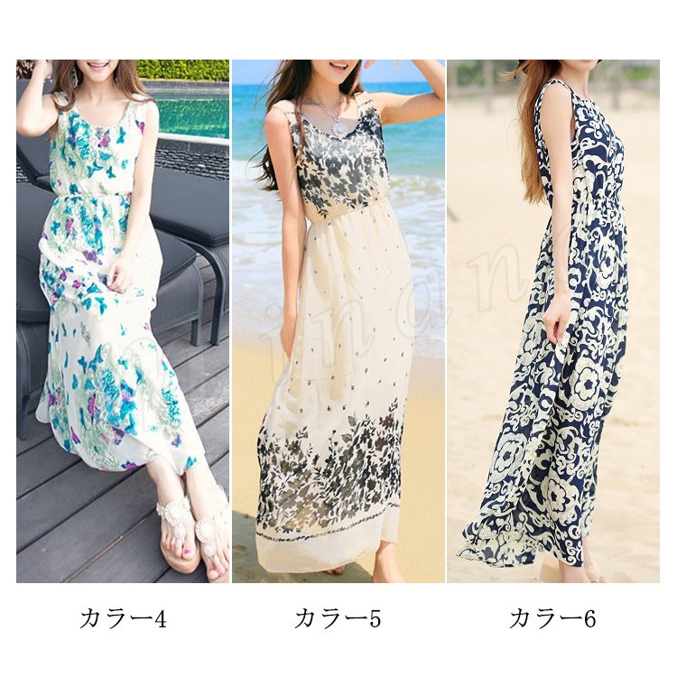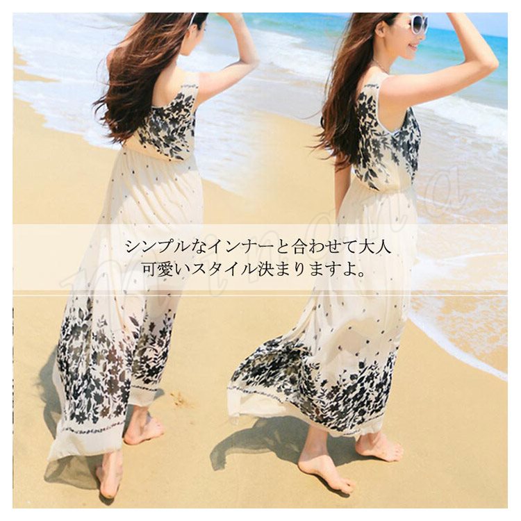 ロングワンピース シフォンワンピース マキシワンピース ノースリーブ レデイース マキシ丈 花柄 旅行 キャミソールワンピース 海 浜辺 デー