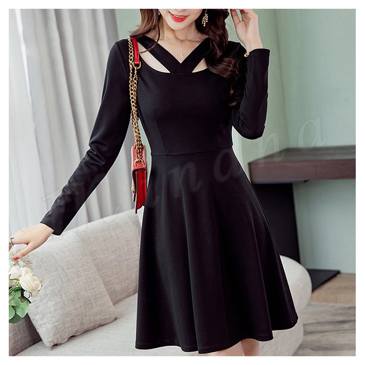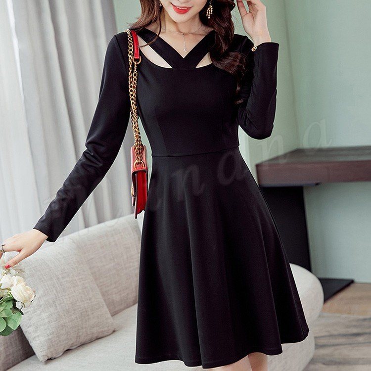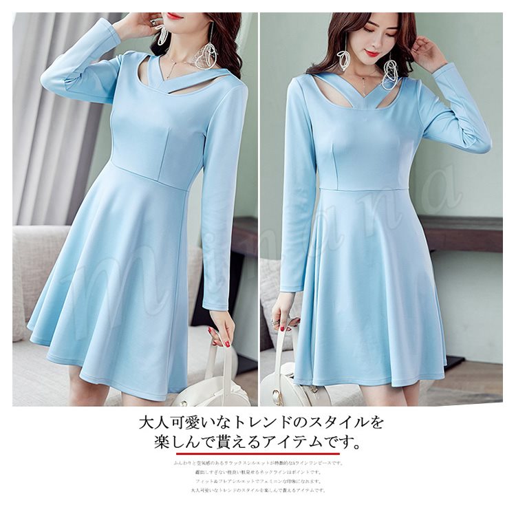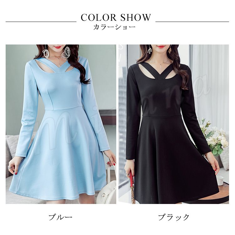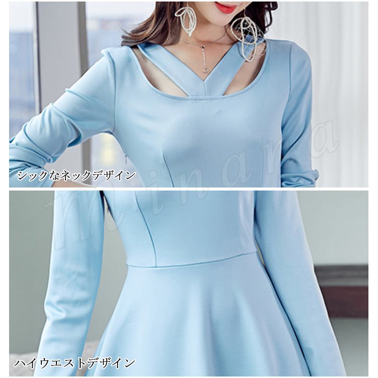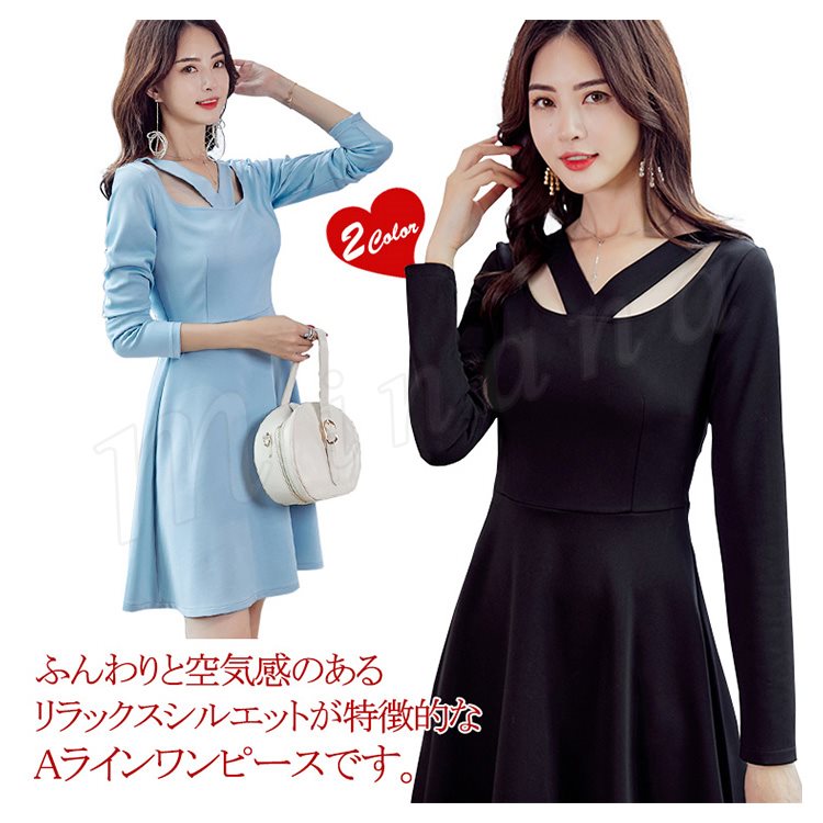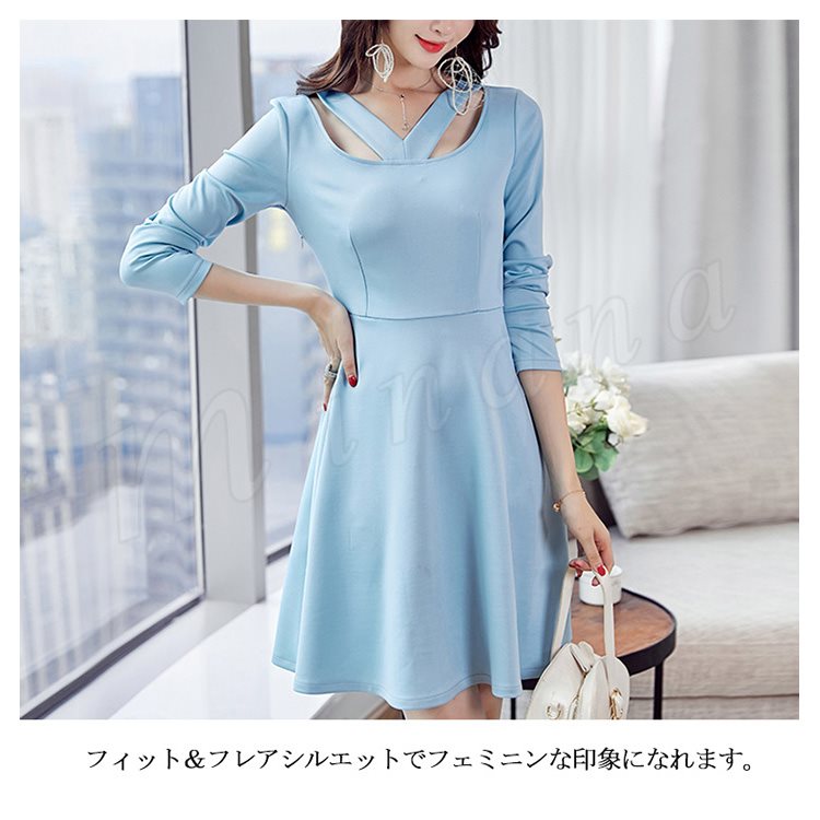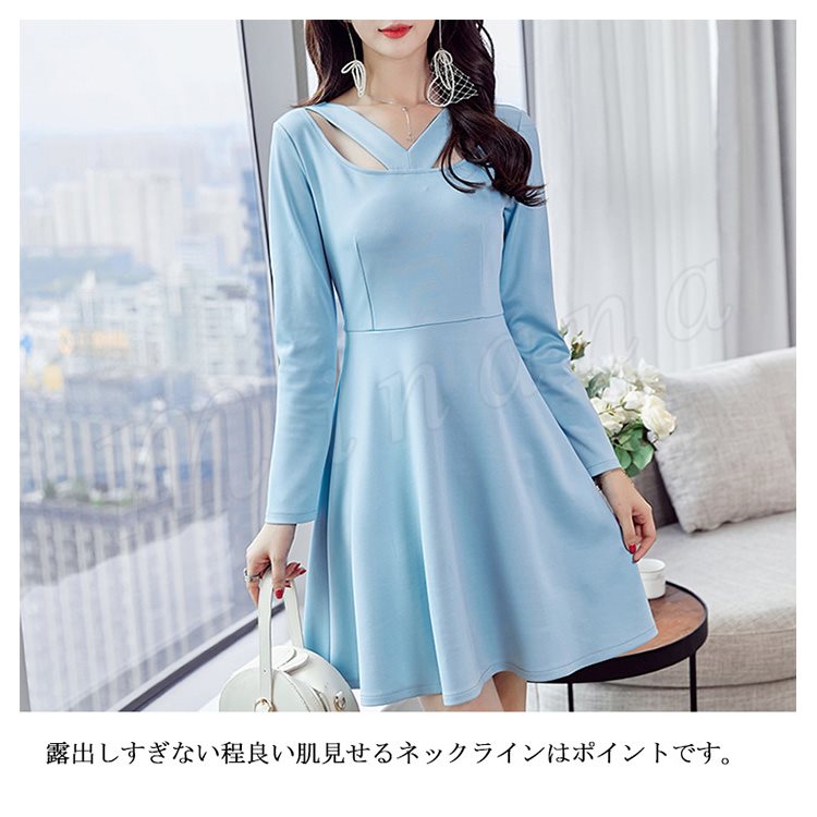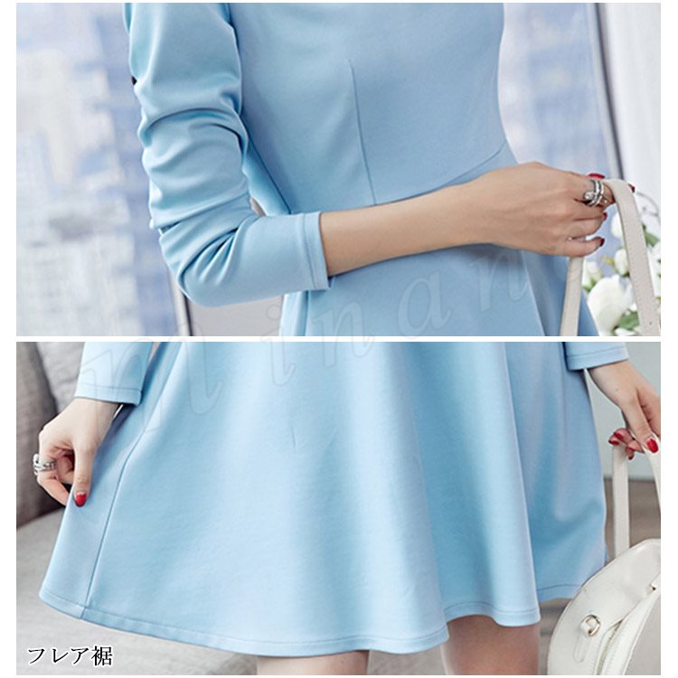 レディースワンピース フォーマルワンピース Aラインワンピース 無地 長袖 フレアワンピース おしゃれ ひざ丈 デート 可愛い 大人 上品 女子会
