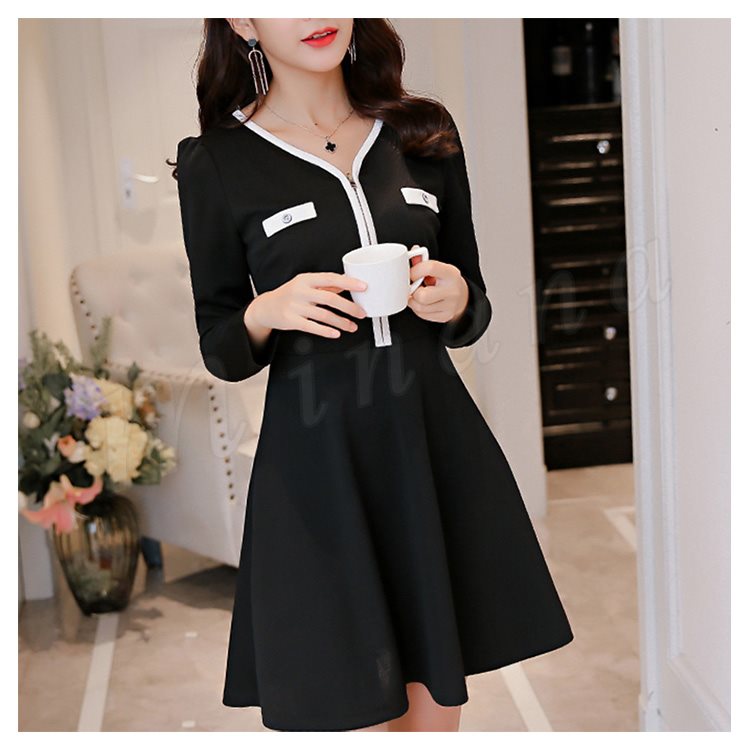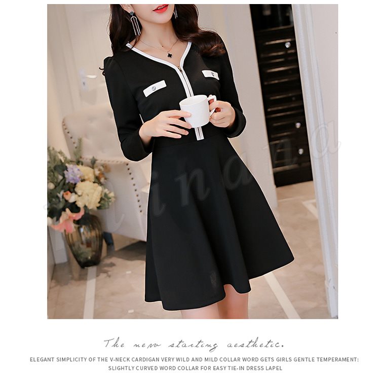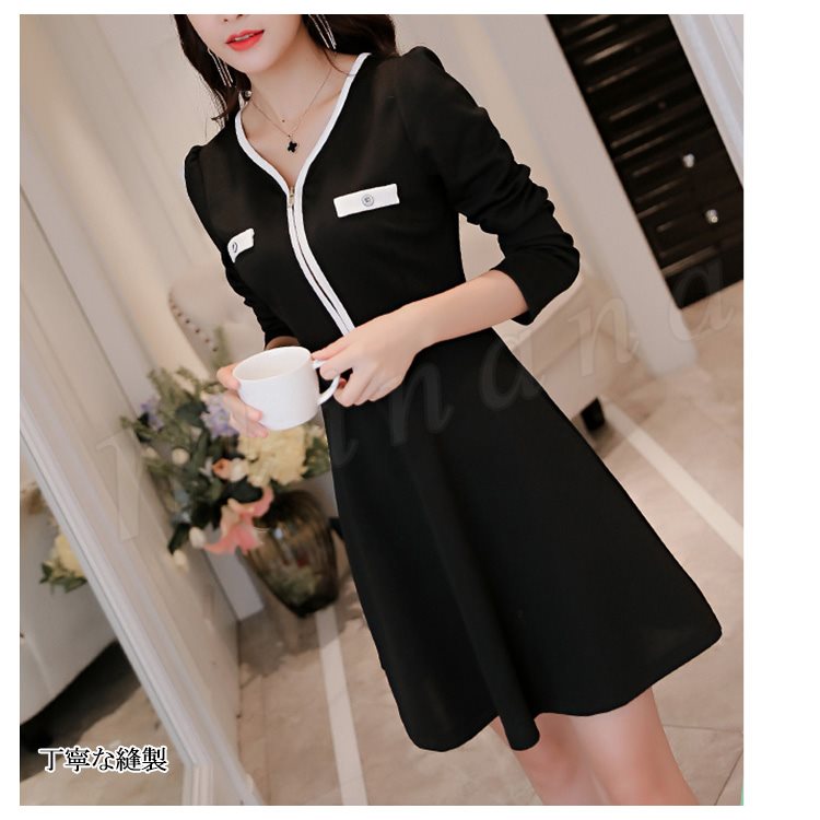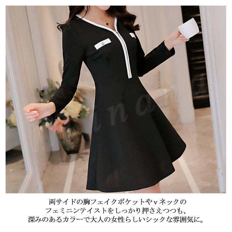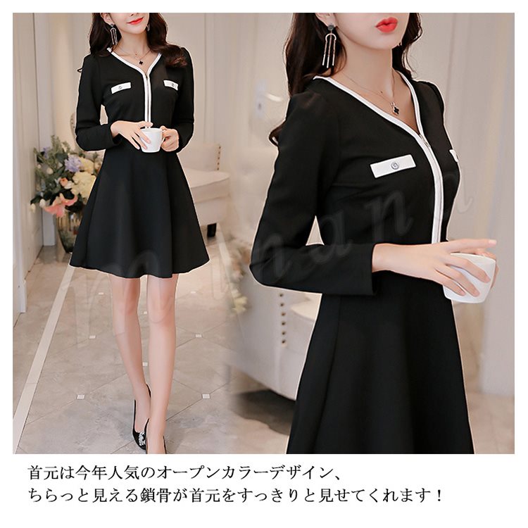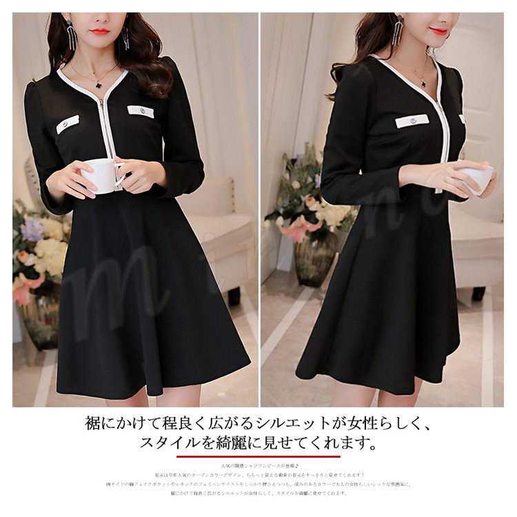 レディースワンピース フォーマルワンピース Aラインワンピース 配色 長袖 フレアワンピース おしゃれ ミニ丈 デート 可愛い 大人 上品 女子会