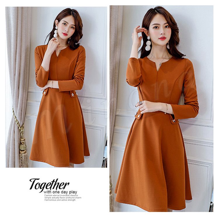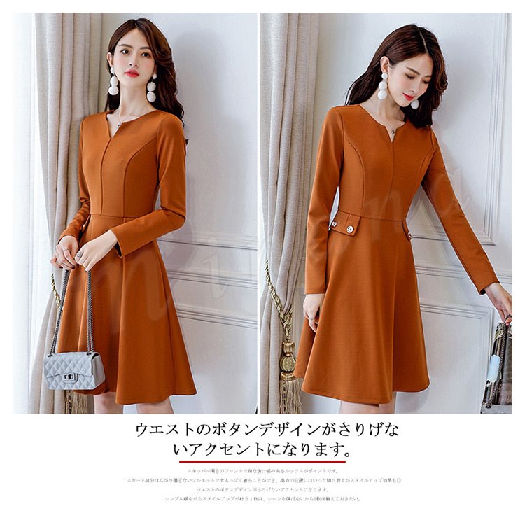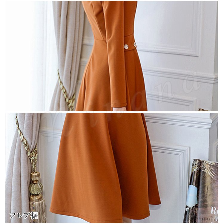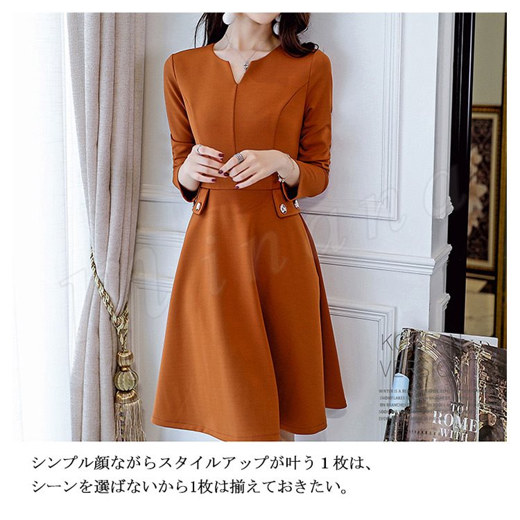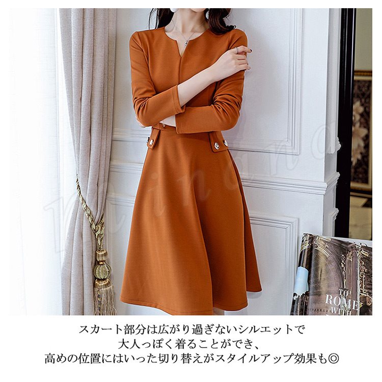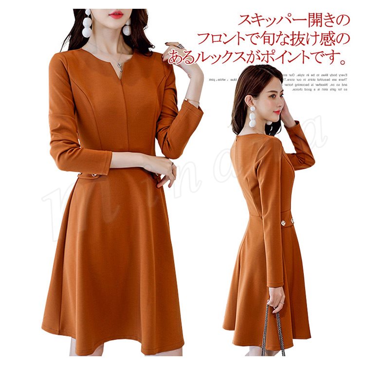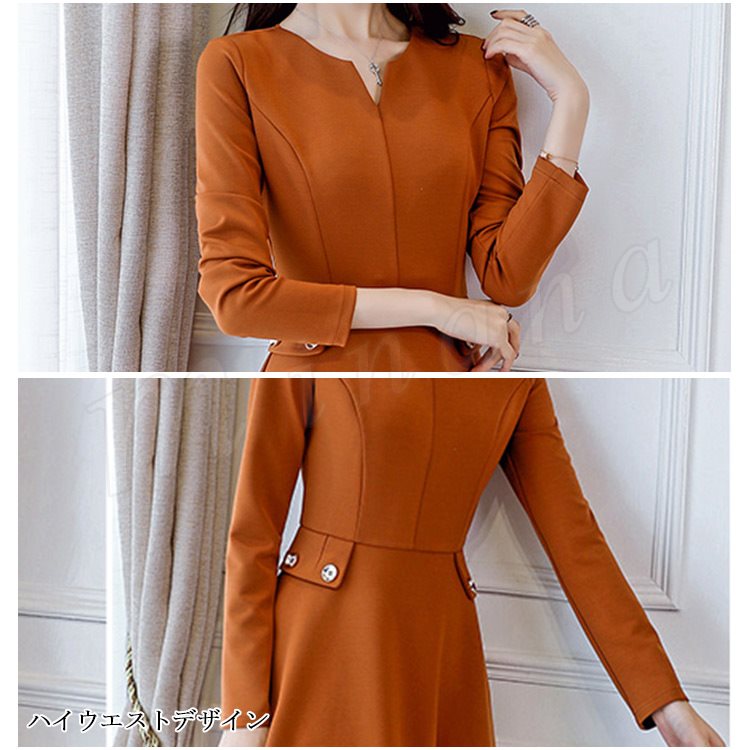 レディースワンピース フォーマルワンピース Aラインワンピース 無地 長袖 フレアワンピース おしゃれ ひざ丈 デート 可愛い 大人 上品 女子会