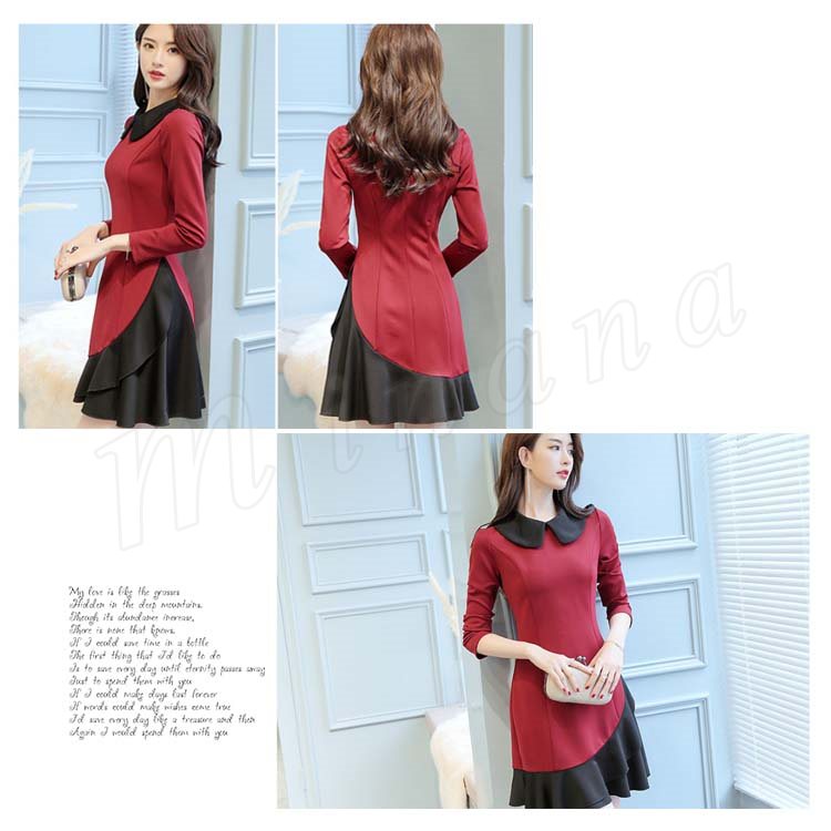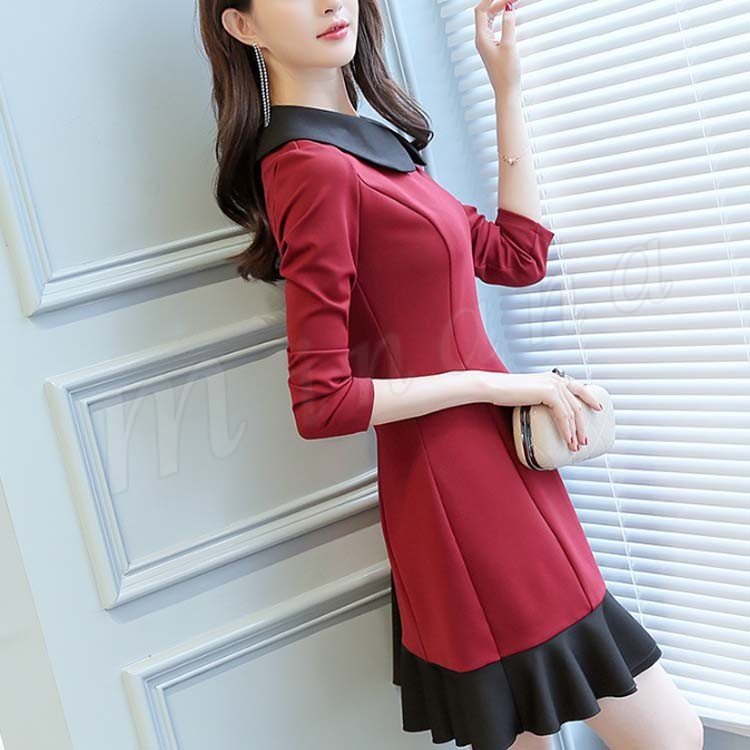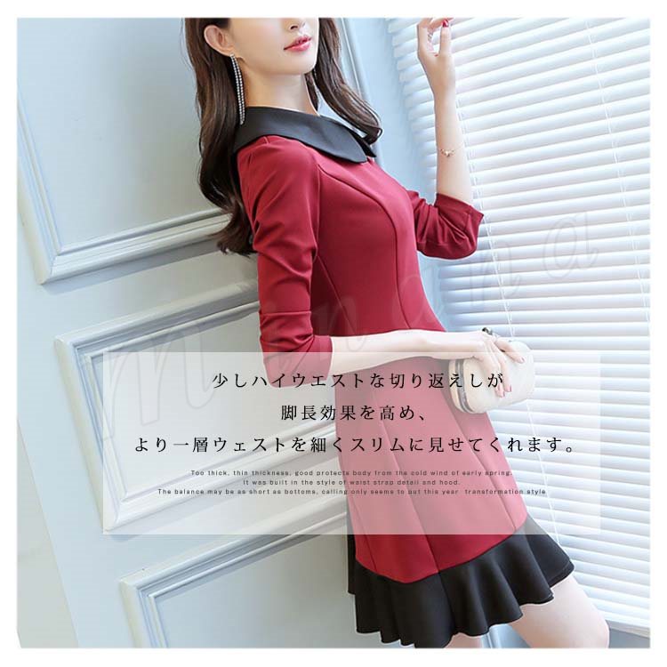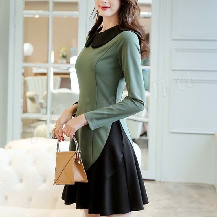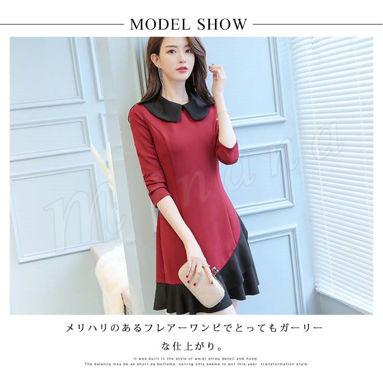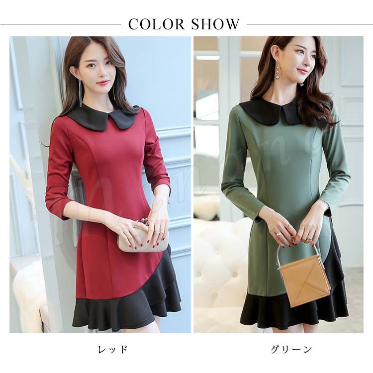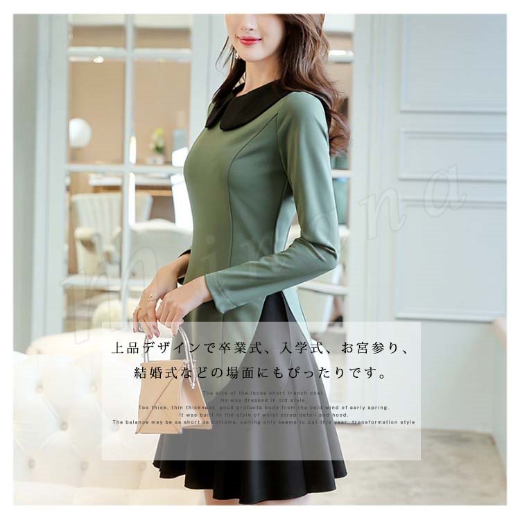 Aラインワンピース フレアワンピース 重ね着ワンピース 丸襟 長袖 レディース 大きいいサイズ ミニ丈 可愛い 通勤 フェミニン エレガント