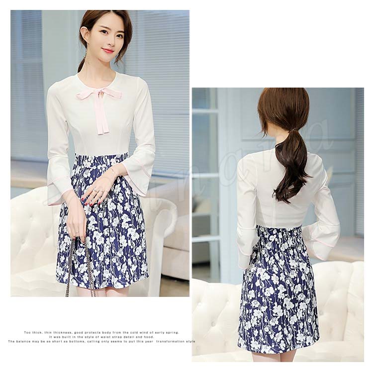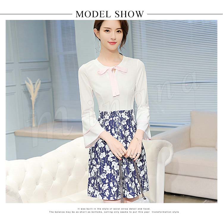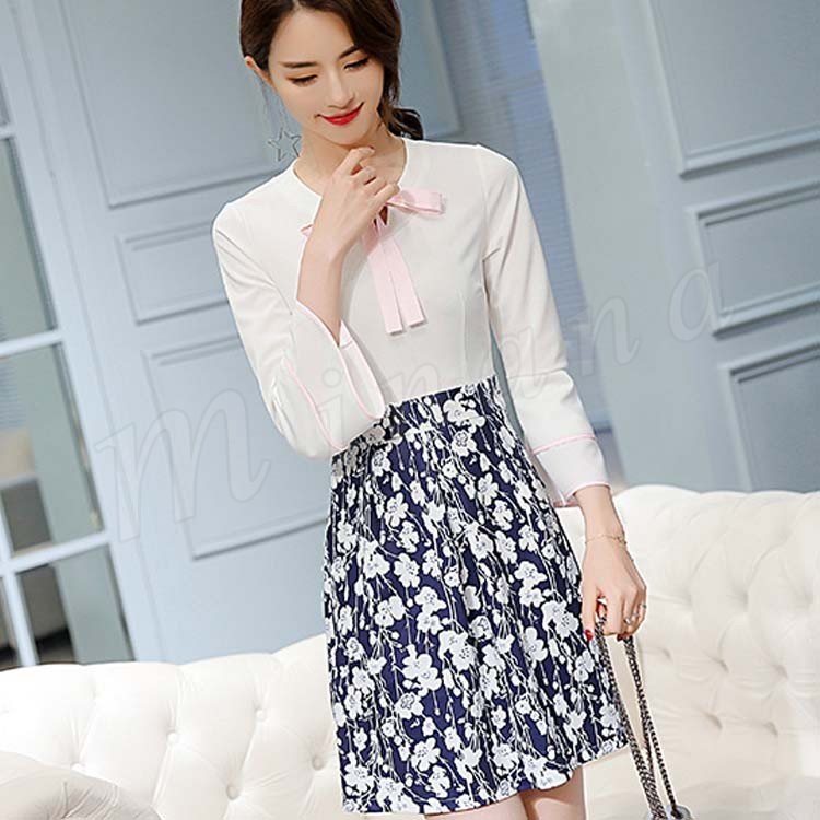 | 女性らしさが溢れるドッキングワンピースです。 ウエスト位置が高めなので足長効果抜群です。 襟元のリボンがポイントです。 フレアの効いたサテン生地スカートは上半身のスリム感をアップしながら全体を華やかにコーディネートします。 | |