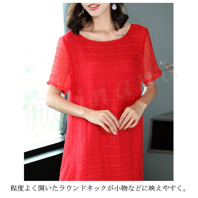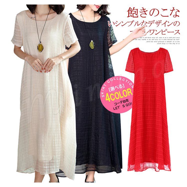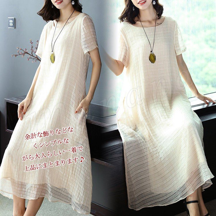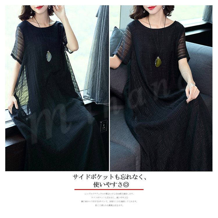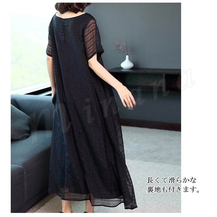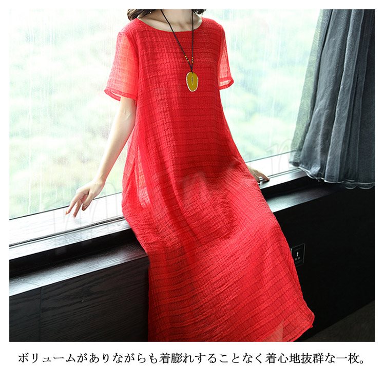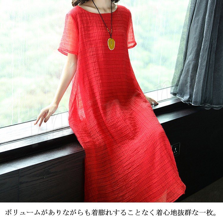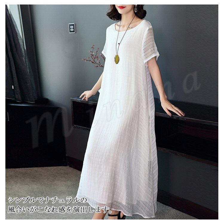 マキシワンピース リラックス ロングワンピース レディース 半袖 ワンピース 夏ワンピース 大きサイズ シンプル ラウンドネック 無地 春 夏 秋 マ