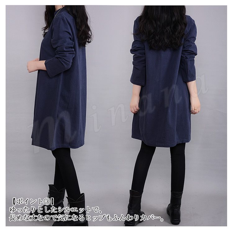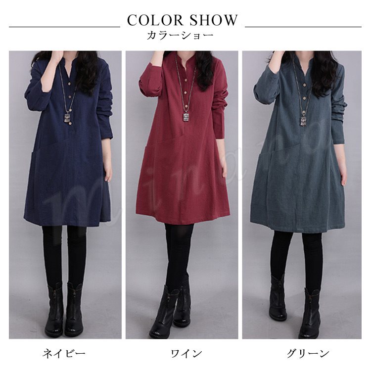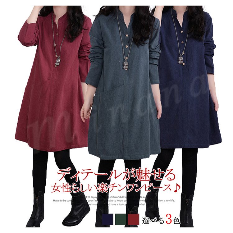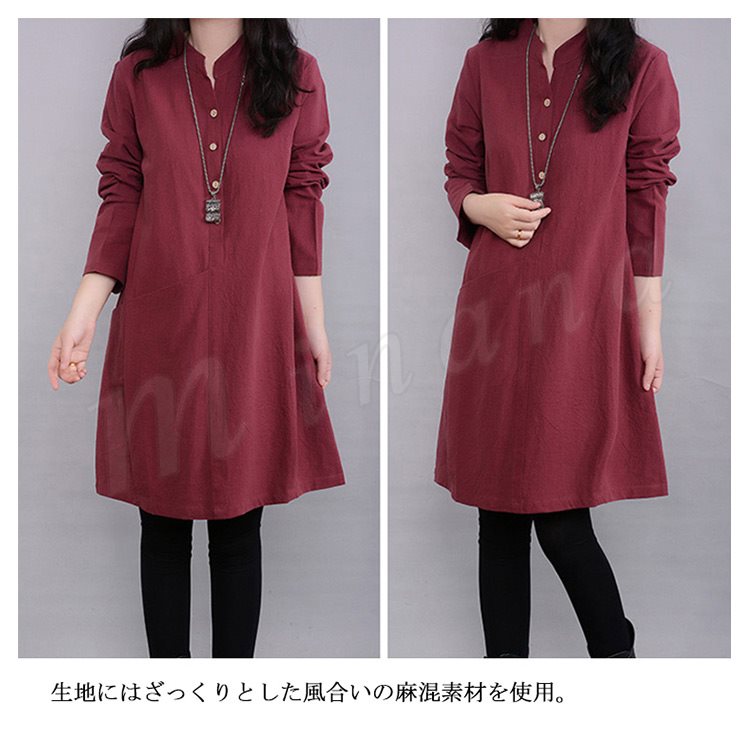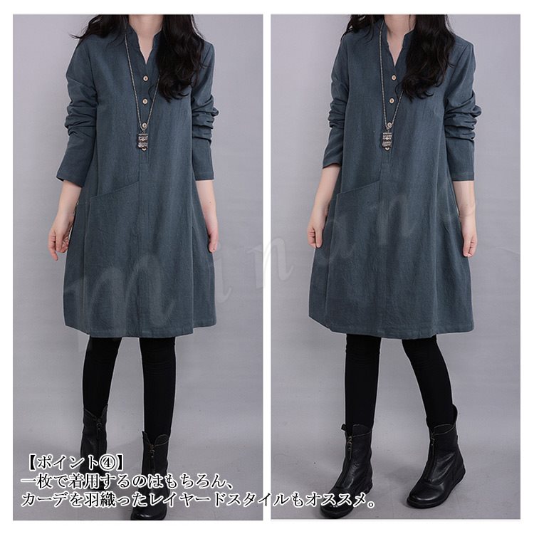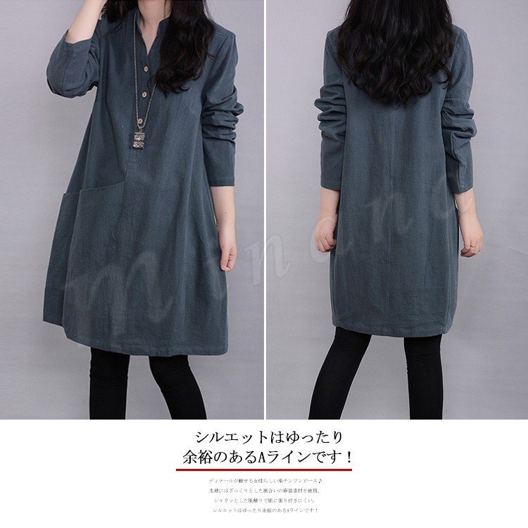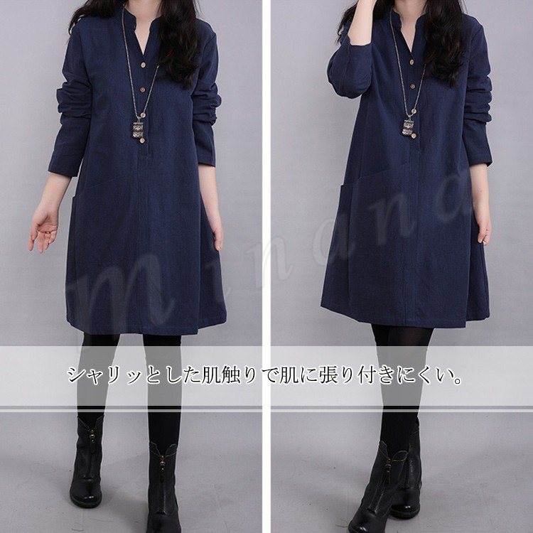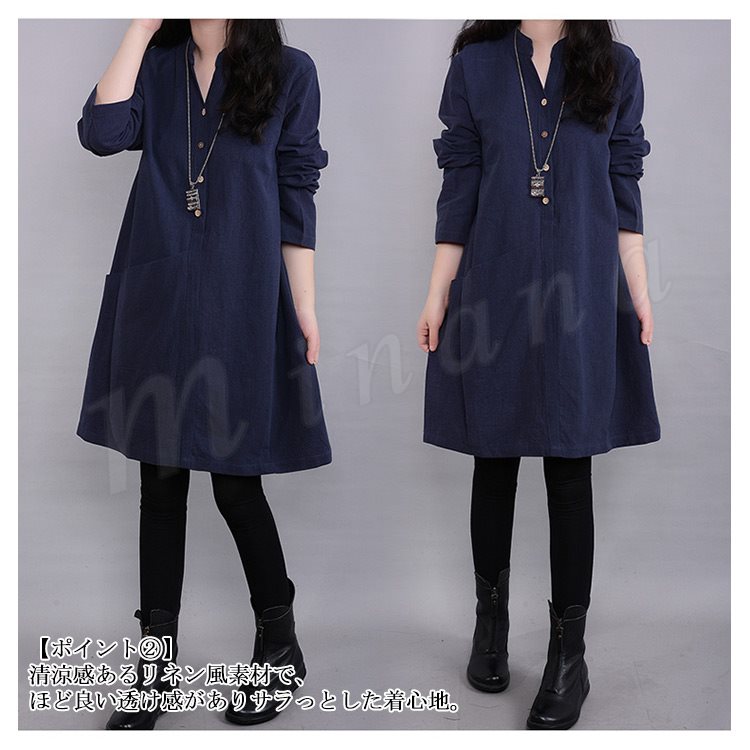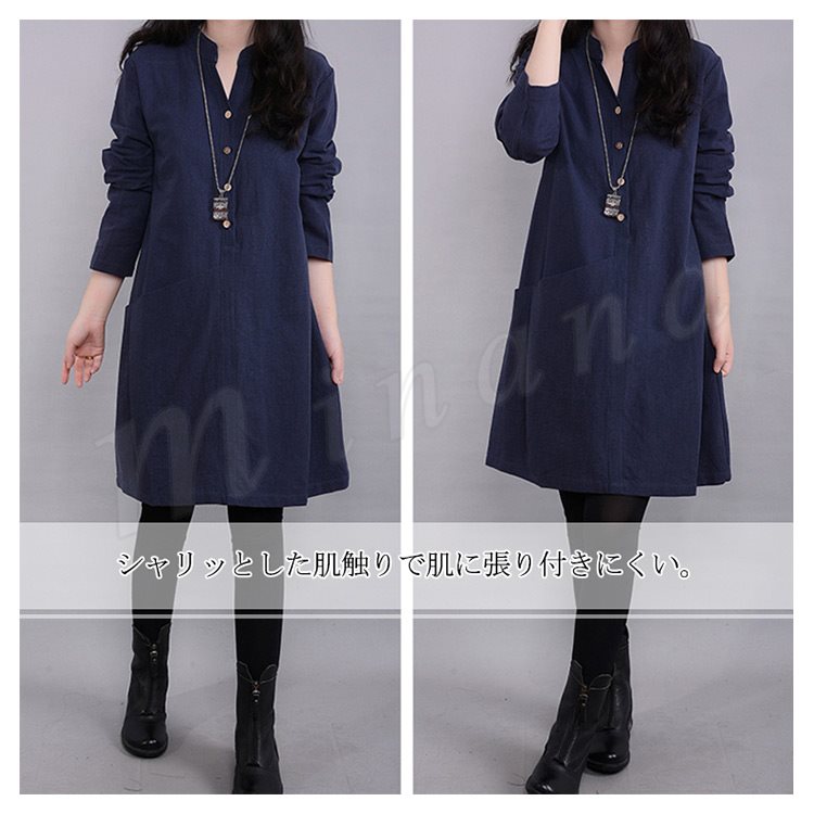 [3色展開]ワンピース シャツワンピ レディース 長袖 綿麻 コットン リネン ゆったり ナチュラル ひざ丈 膝丈 春夏 カジュアル 体型カバー 女子