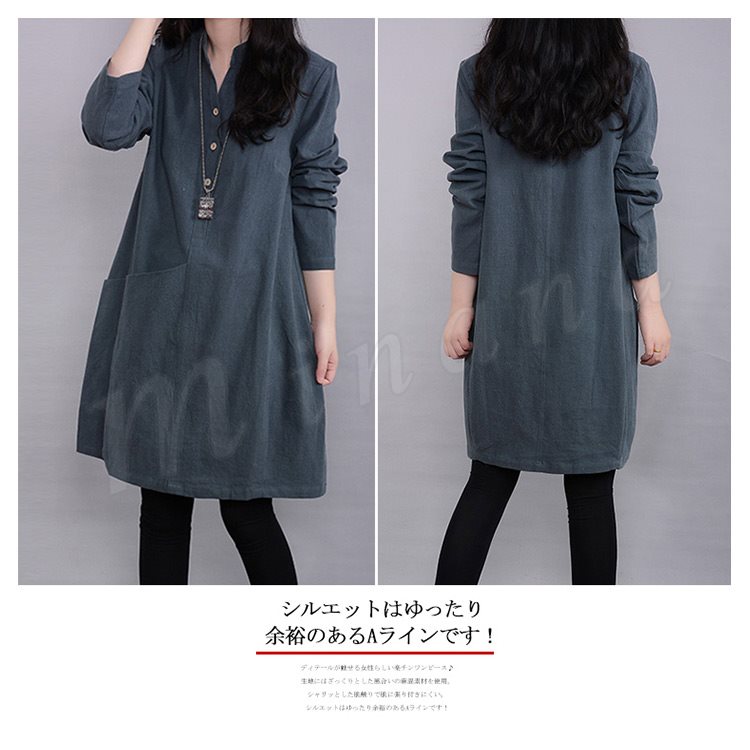 | ディテールが魅せる女性らしい楽チンワンピース♪ 生地にはざっくりとした風合いの麻混素材を使用。 シャリッとした肌触りで肌に張り付きにくい。 シルエットはゆったり余裕のあるAラインです! | |