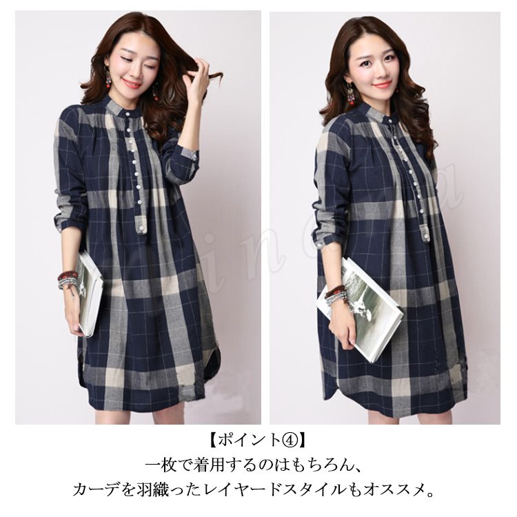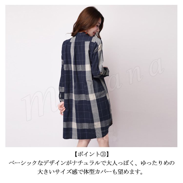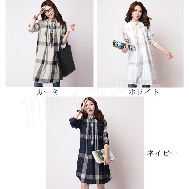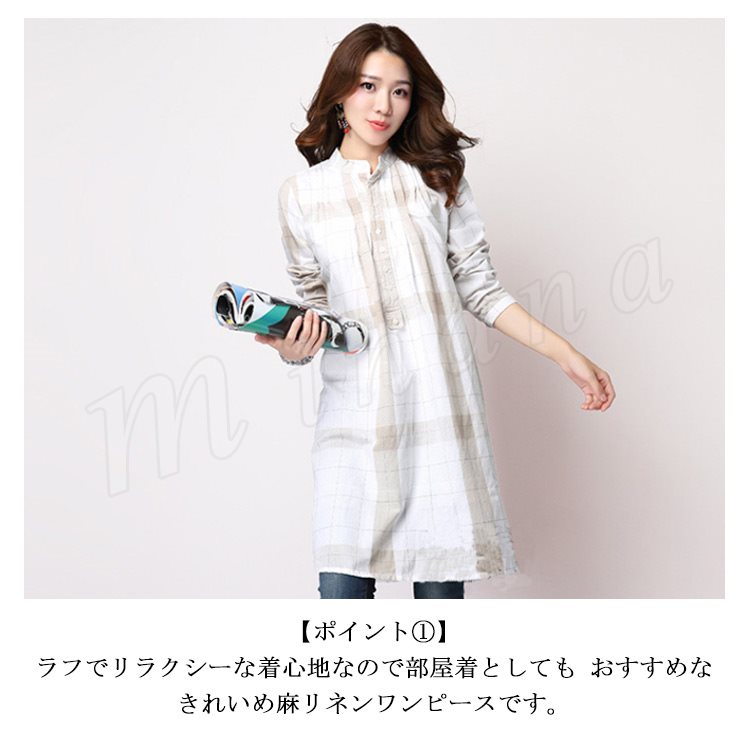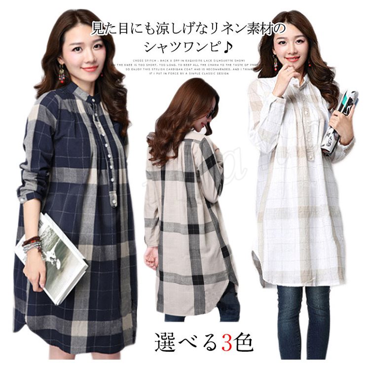 [3色展開]ワンピース シャツワンピ レディース 長袖 綿麻 コットン リネン ゆったり チャック柄 ひざ丈 膝丈 春夏 カジュアル 体型カバー 女子