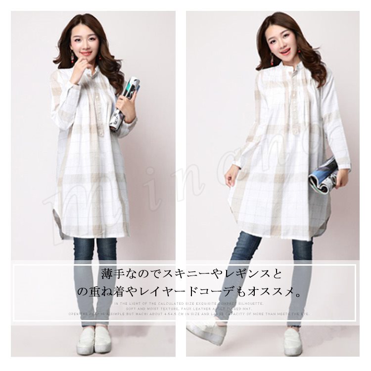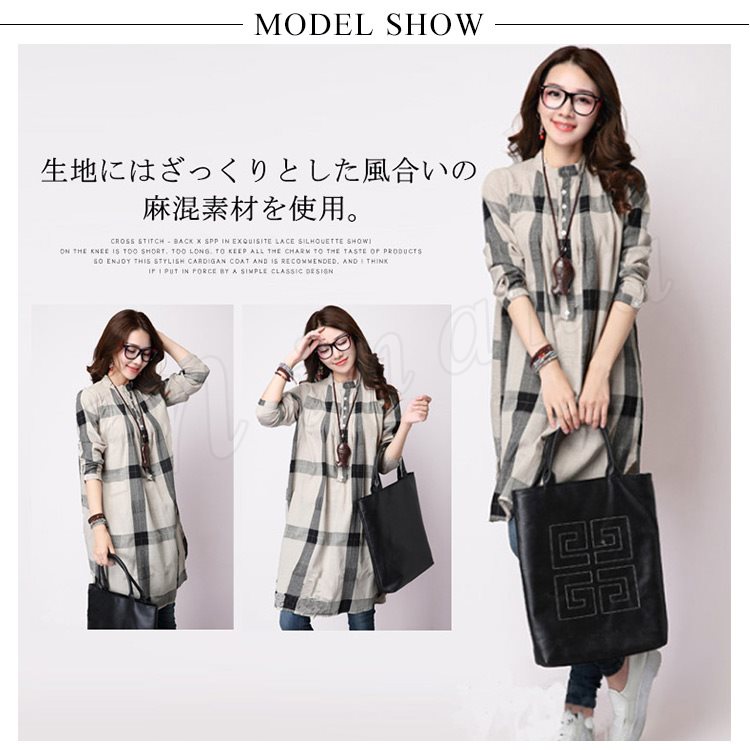 | 見た目にも涼しげなリネン素材のシャツワンピ♪ 生地にはざっくりとした風合いの麻混素材を使用。 チャック柄なので、上品できれいめに着られる。 薄手なのでスキニーやレギンスとの重ね着やレイヤードコーデもオススメ。 | |