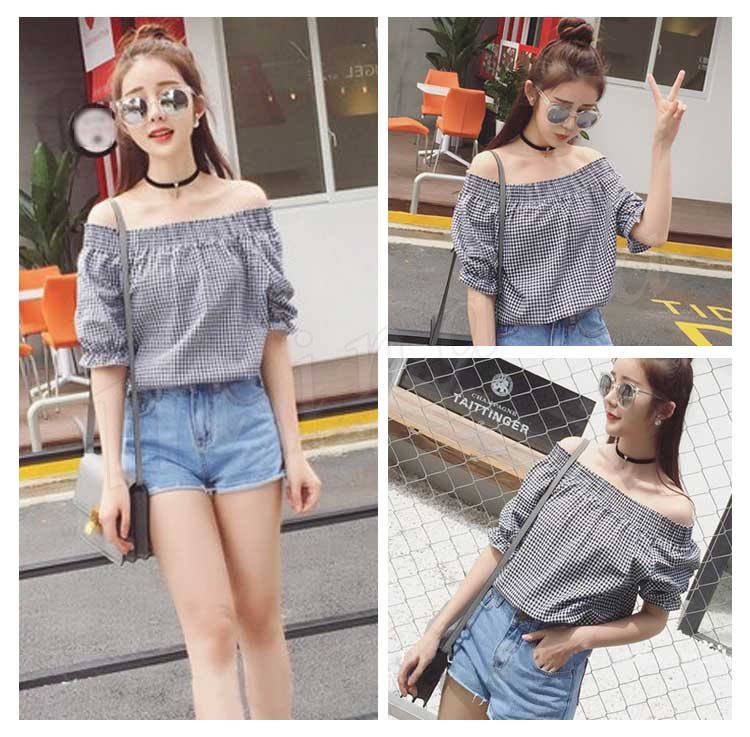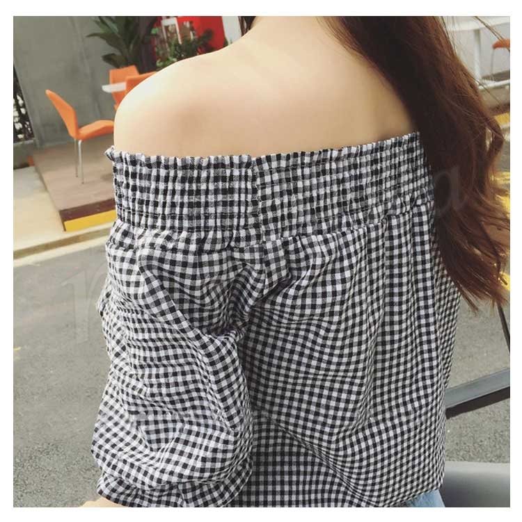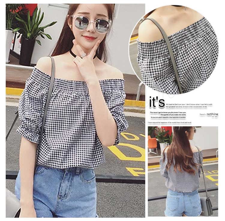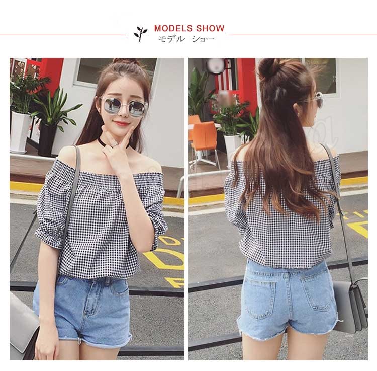 オフショルダー 2018 オフショル オフショル ブラウス フリル トップス 半袖 カットソー Tシャツ チェック レディース
