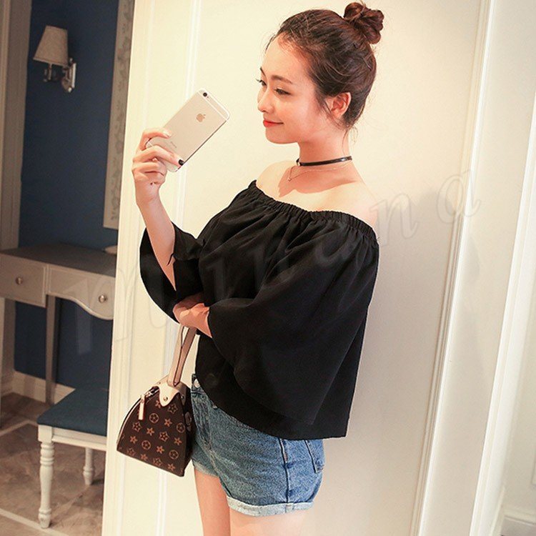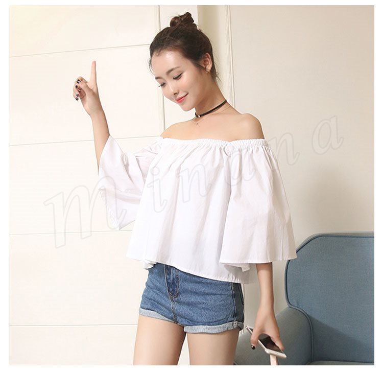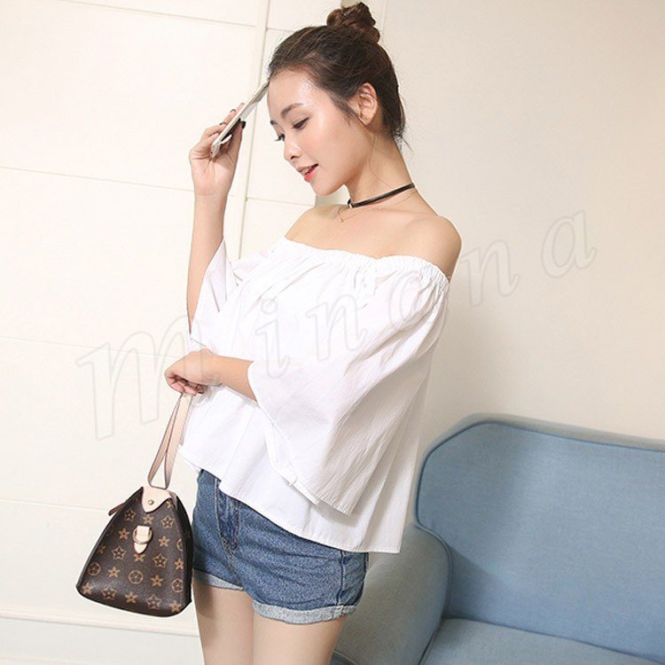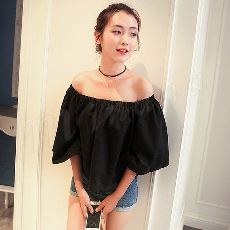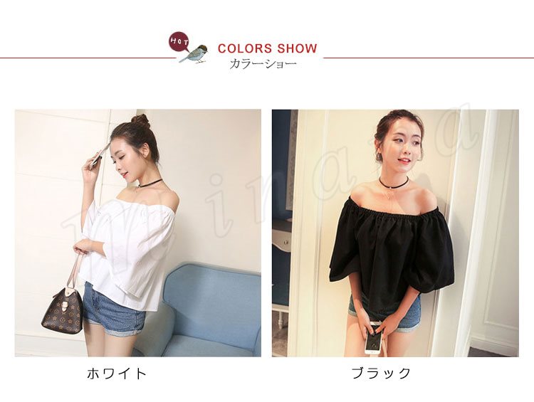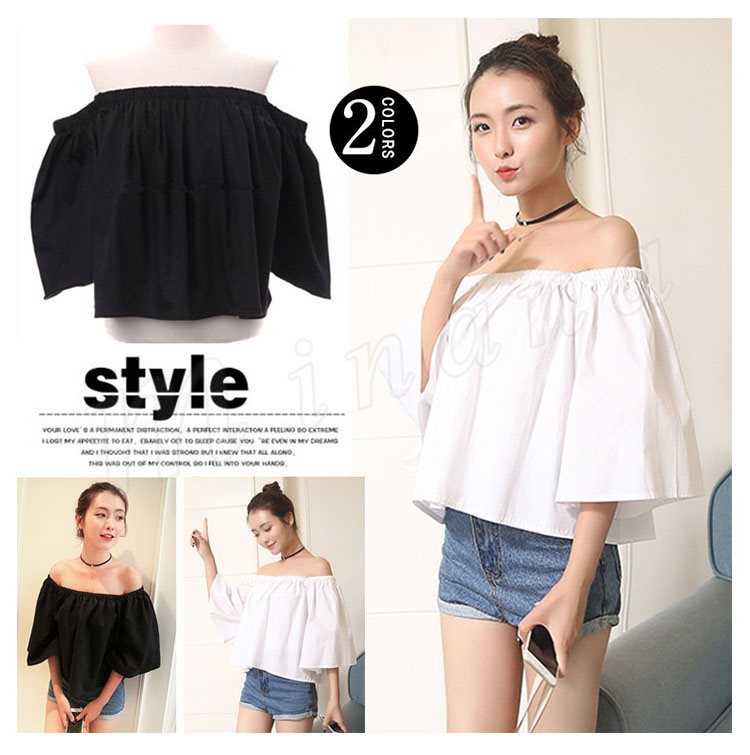 レディース オフショルダー トップス オフショル ブラウス フリル 半袖 カットソー Tシャツ ホワイト 白 ブラック 黒 無地