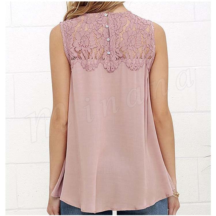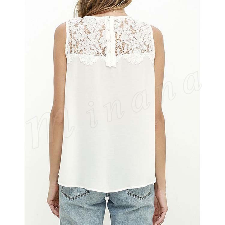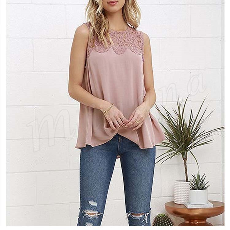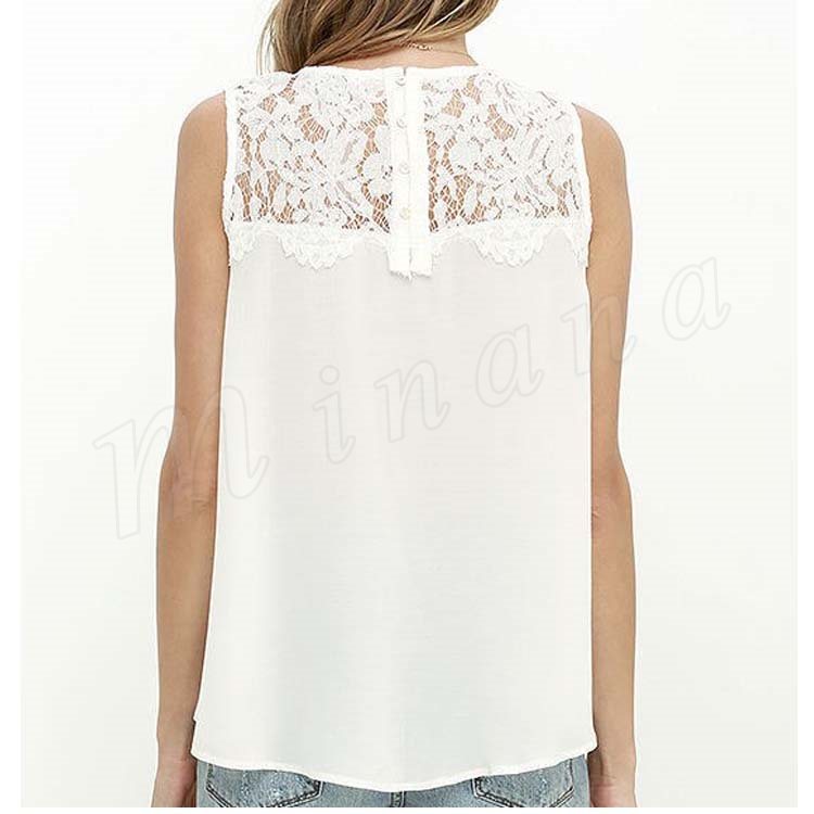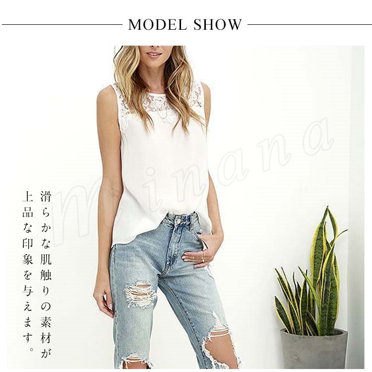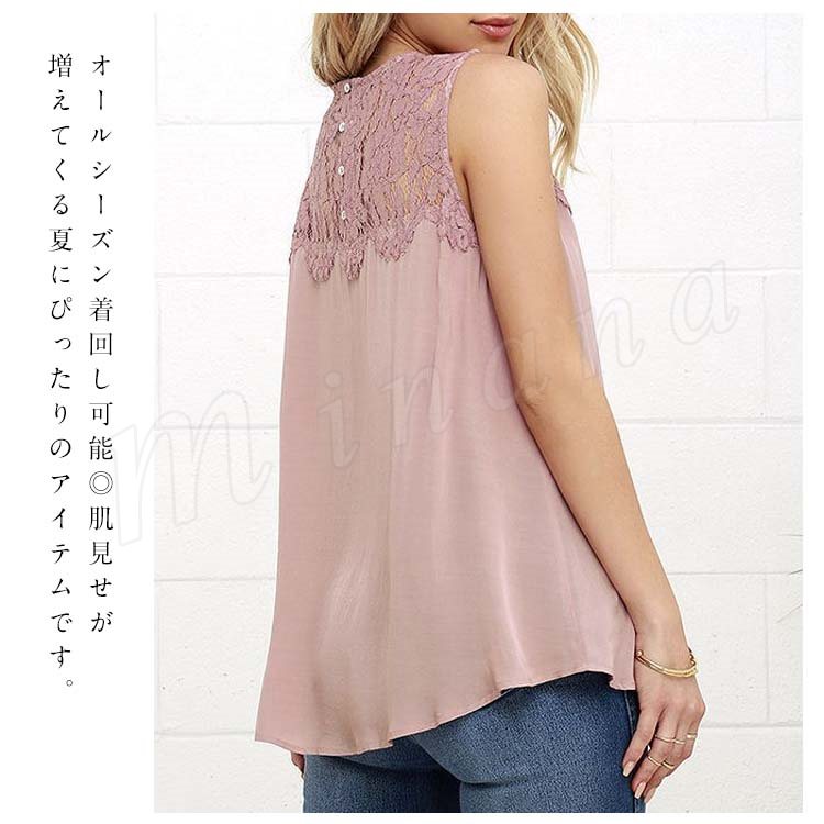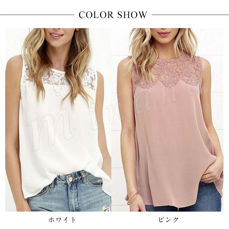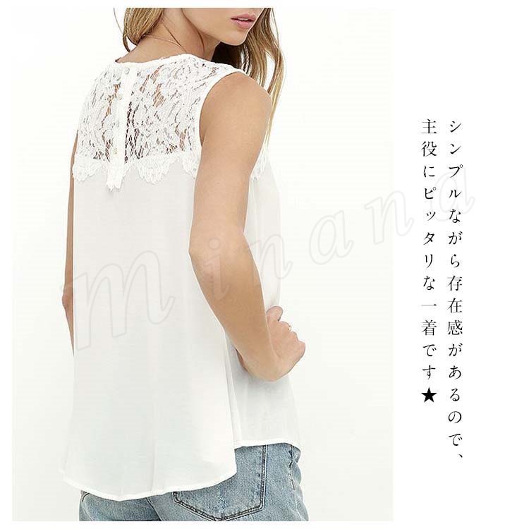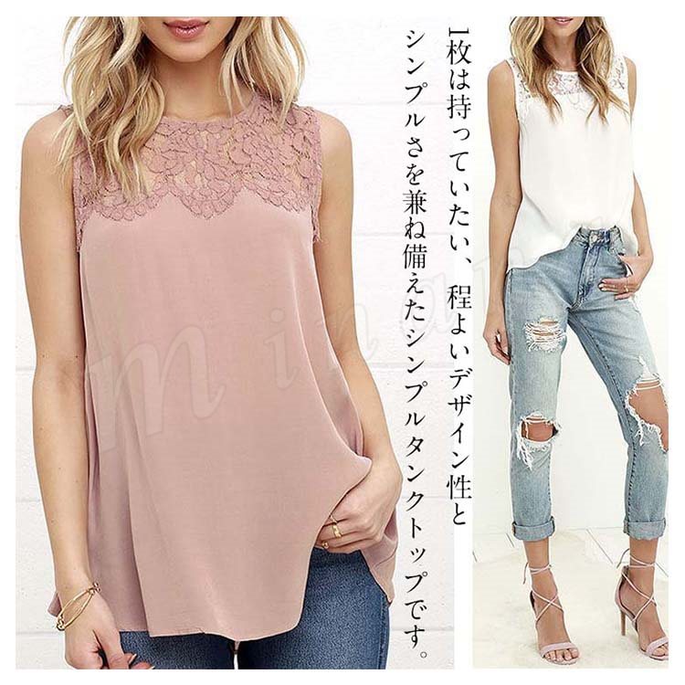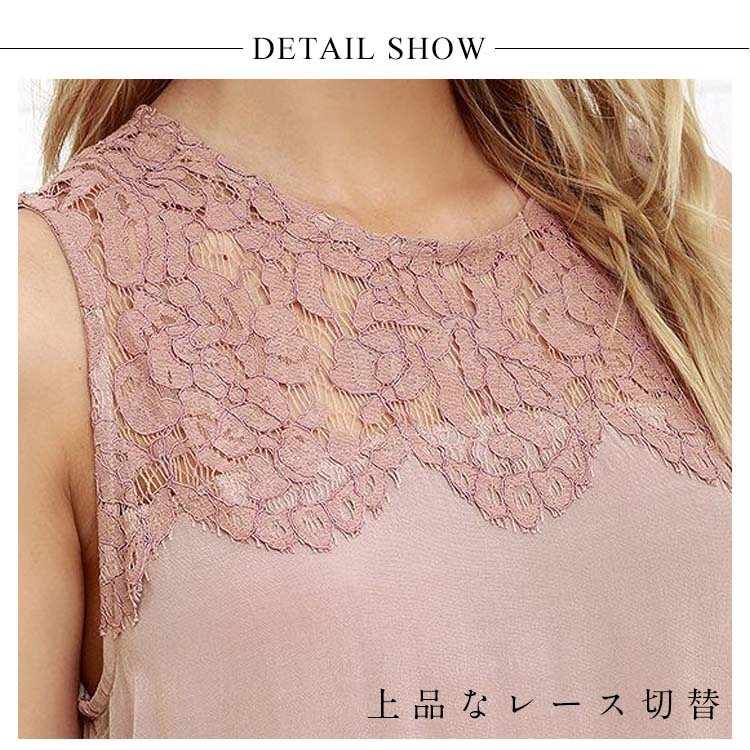 レディースタンクトップ レース切替 ゆったり クルーネック シフォンタンクトップ ノースリーブ 通勤 シンプル 大人可愛い レース おしゃれ