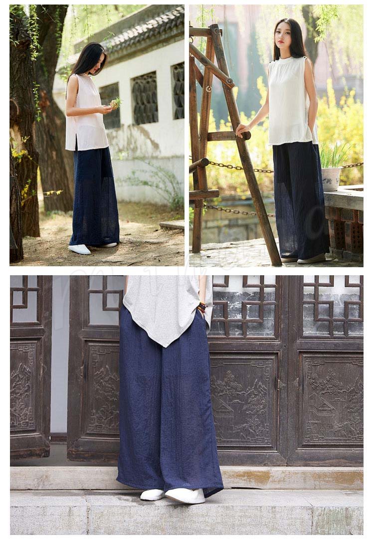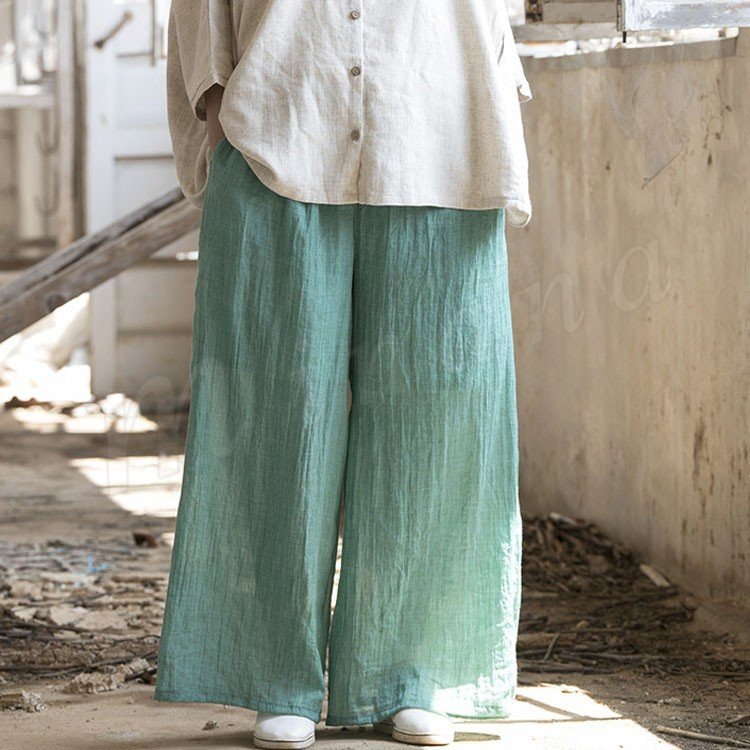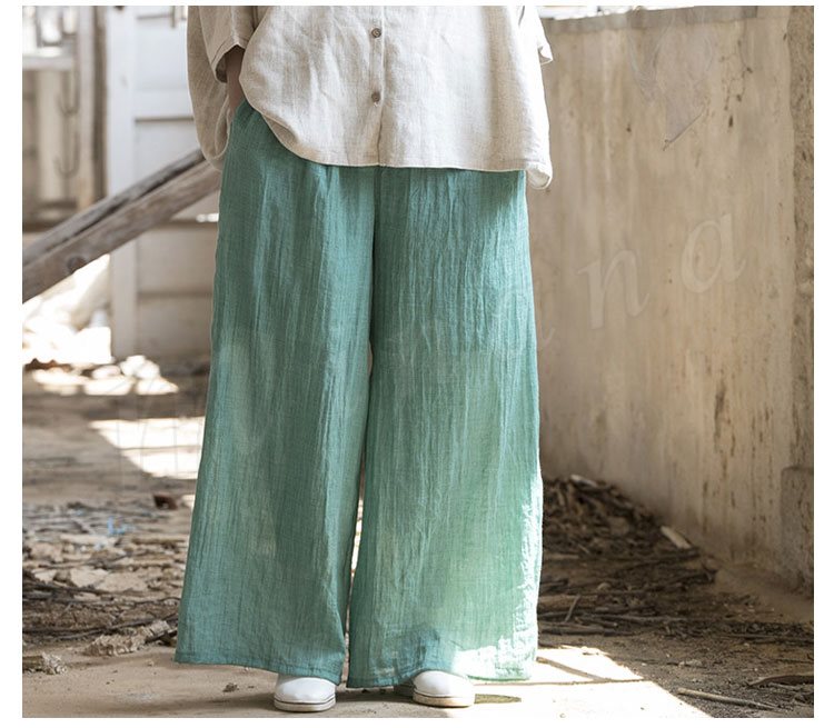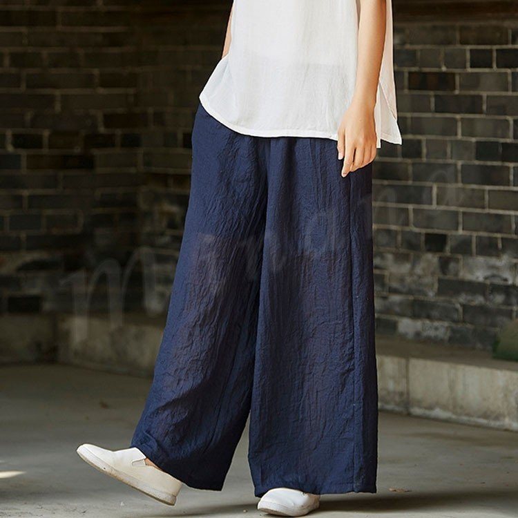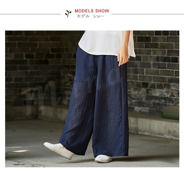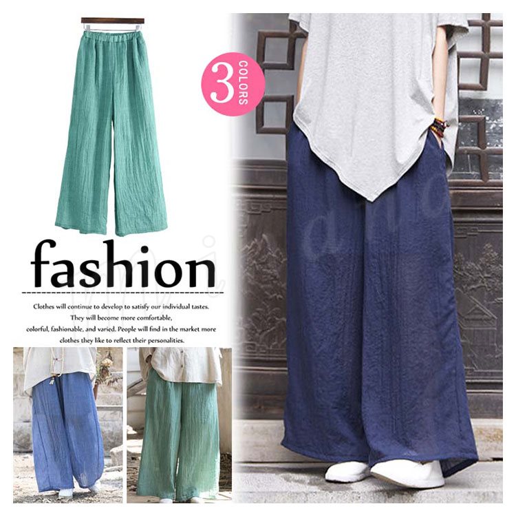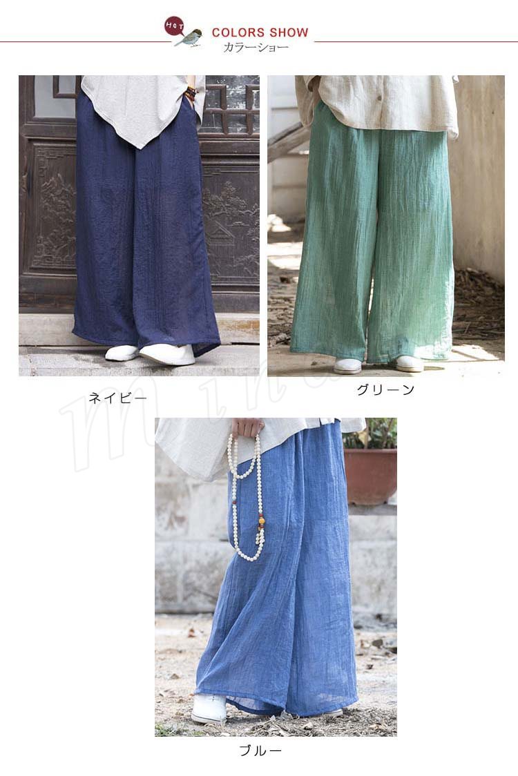 レディース リンネ ガウチョパンツ 綿麻 麻混 ボトムス パンツ 綿麻ボトムス ワイドパンツ スカーチョ 無地 新作