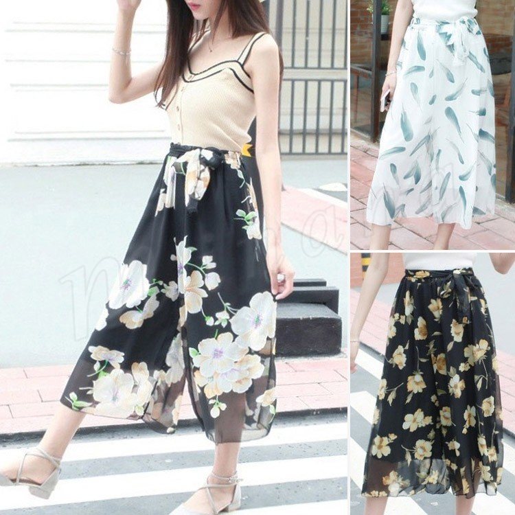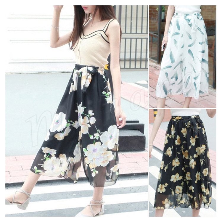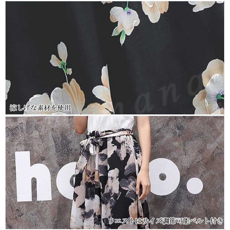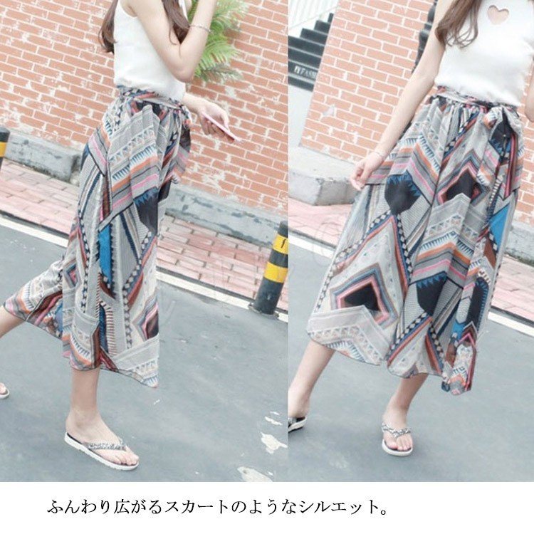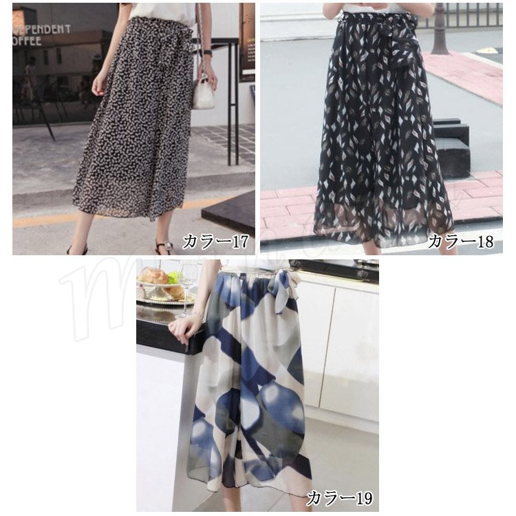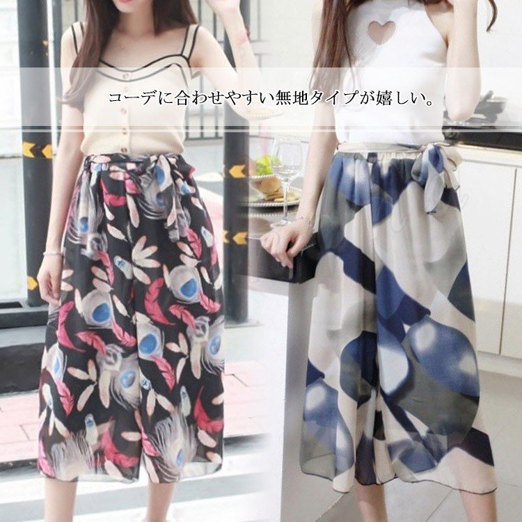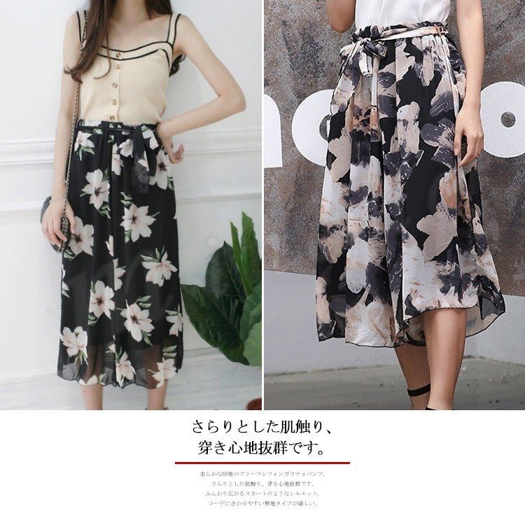 ワイドパンツ ガウチョパンツ レディース シフォンパンツ 花柄 ロングパンツ 9分丈パンツ プリーツ 着痩せ 無地 ゆったり カジュアル お洒