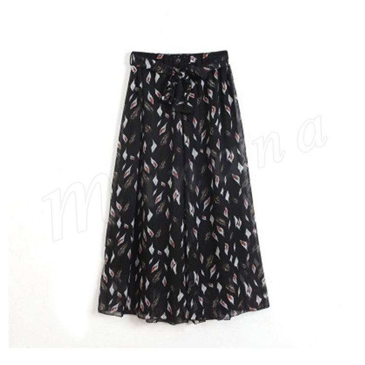 柔らかな印象のプリーツシフォンガウチョパンツ。