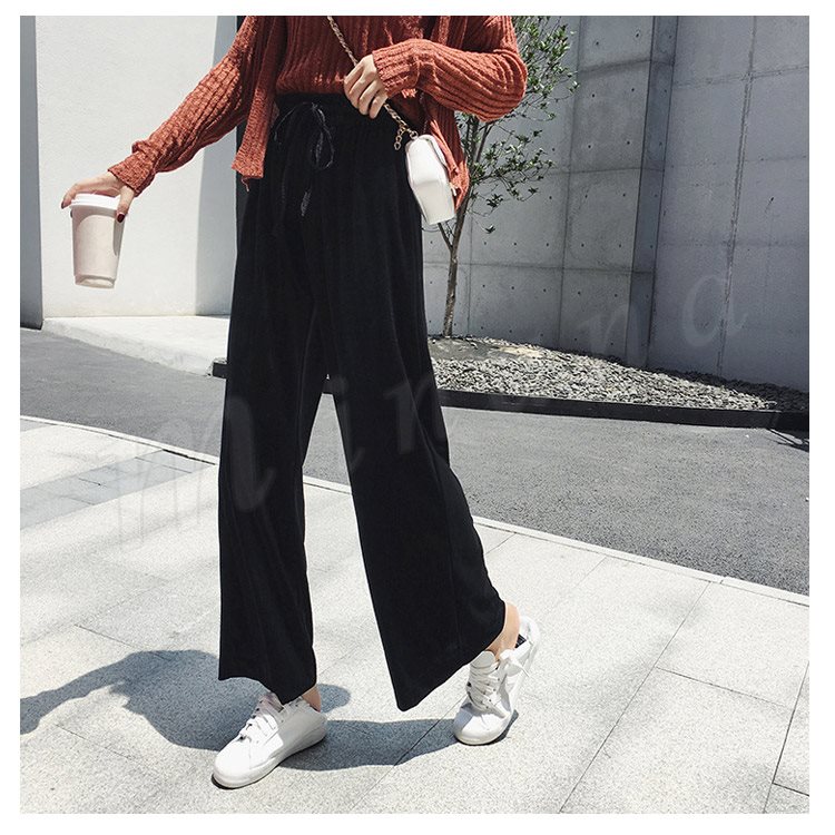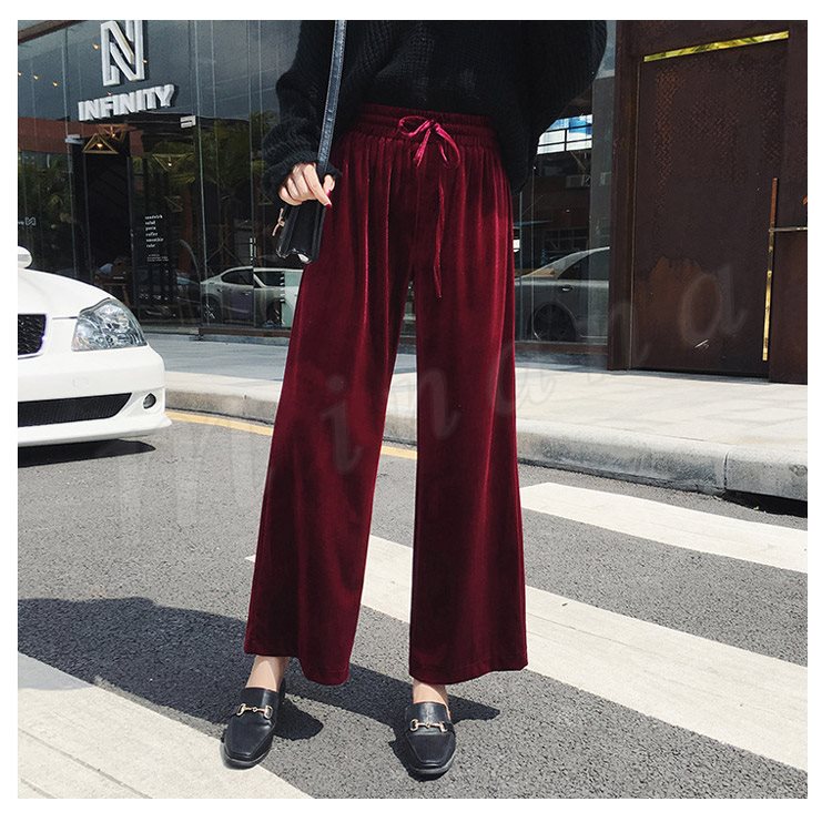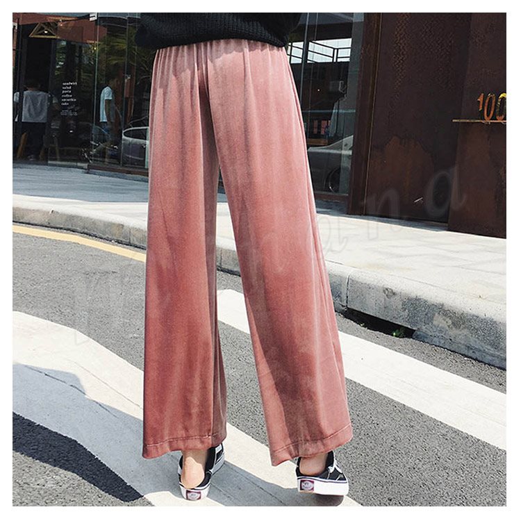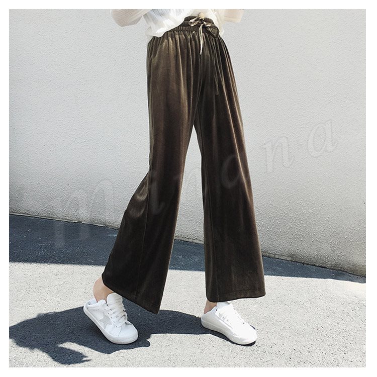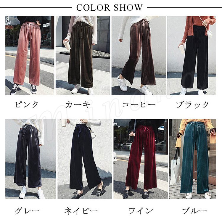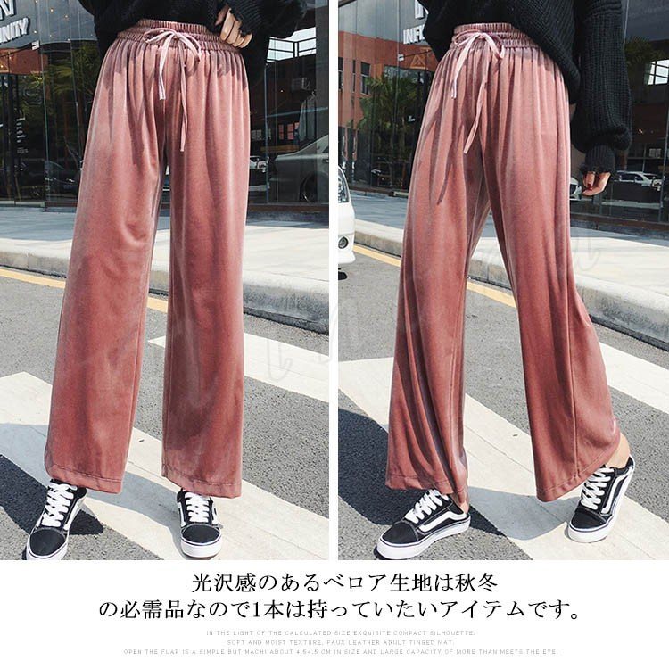 ベロア ロングパンツ ガウチョパンツ ベロア ワイドパンツ レディース ストレート パンツ ストレート ボトムス パンツ 秋 冬 トレンド ウエストゴ