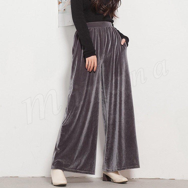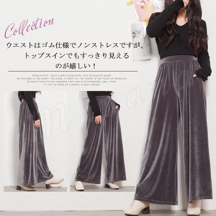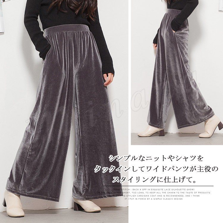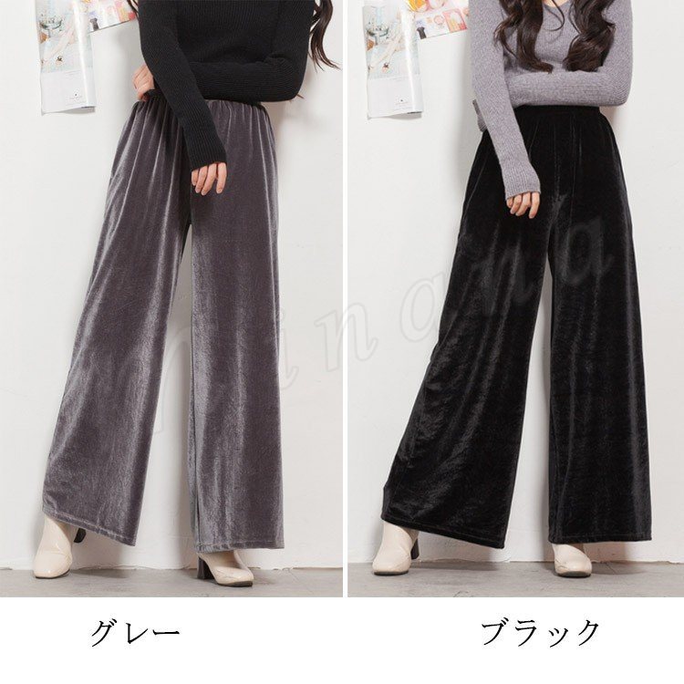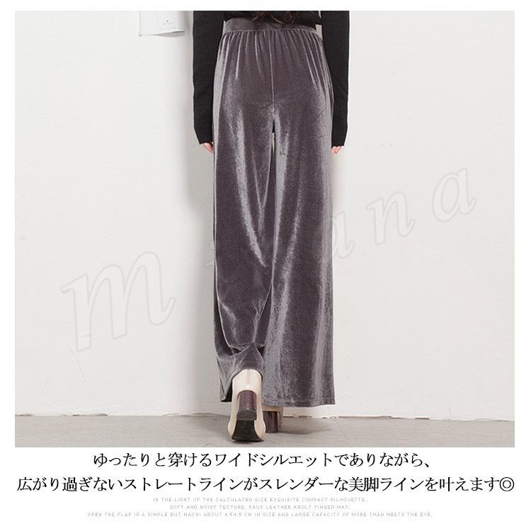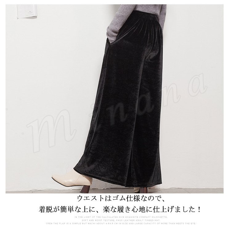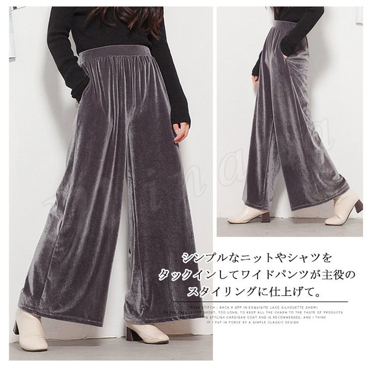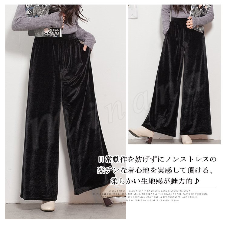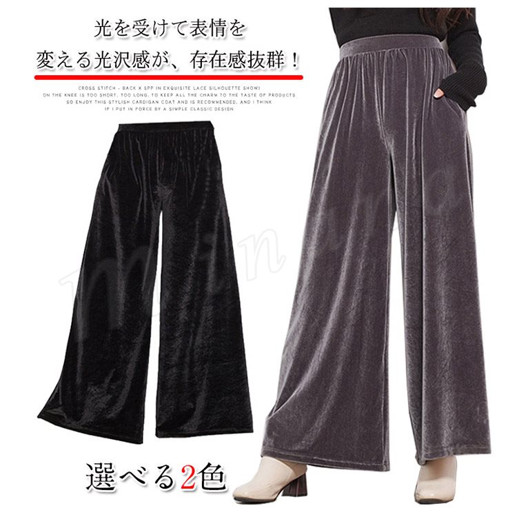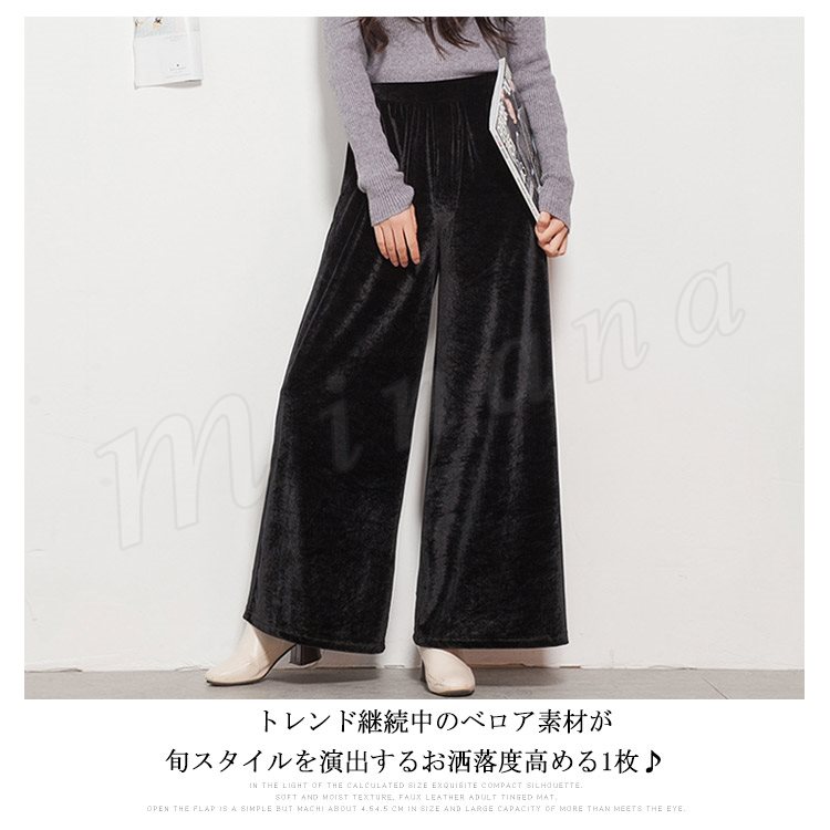 ベロア ワイドパンツ ベルベット ベロア ガウチョパンツ ベロア ロングパンツ ストレート ワイドパンツ ボトムス レディース