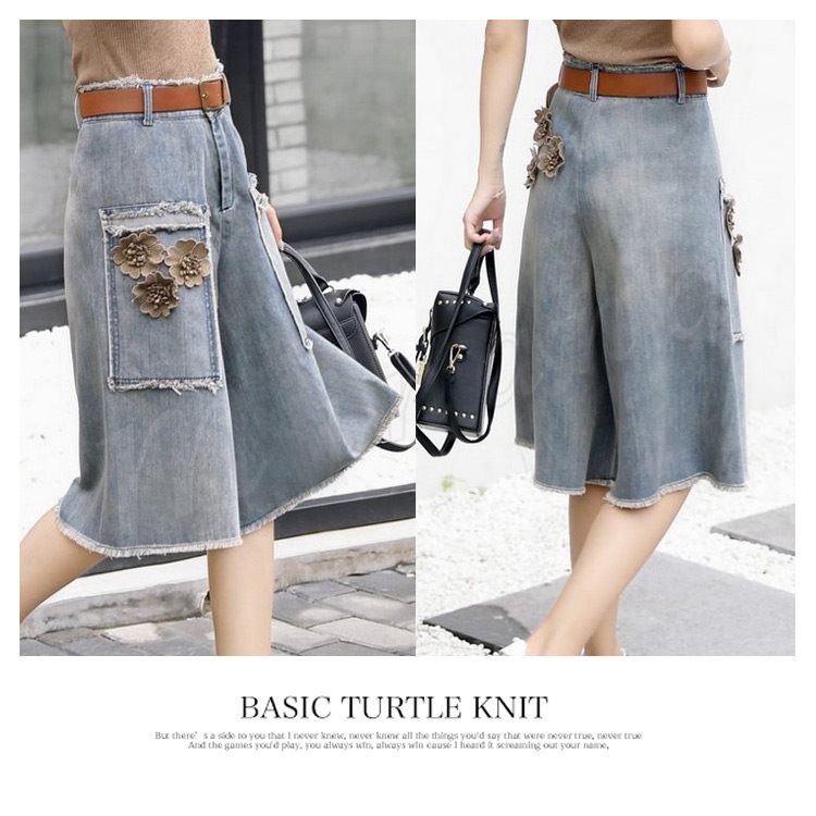 脚のラインをきれいに演出する、爽やかデニムガウチョ。