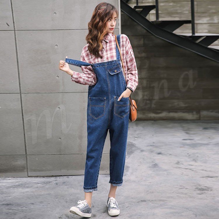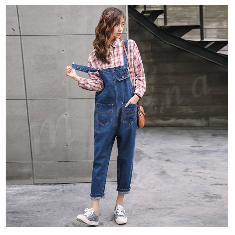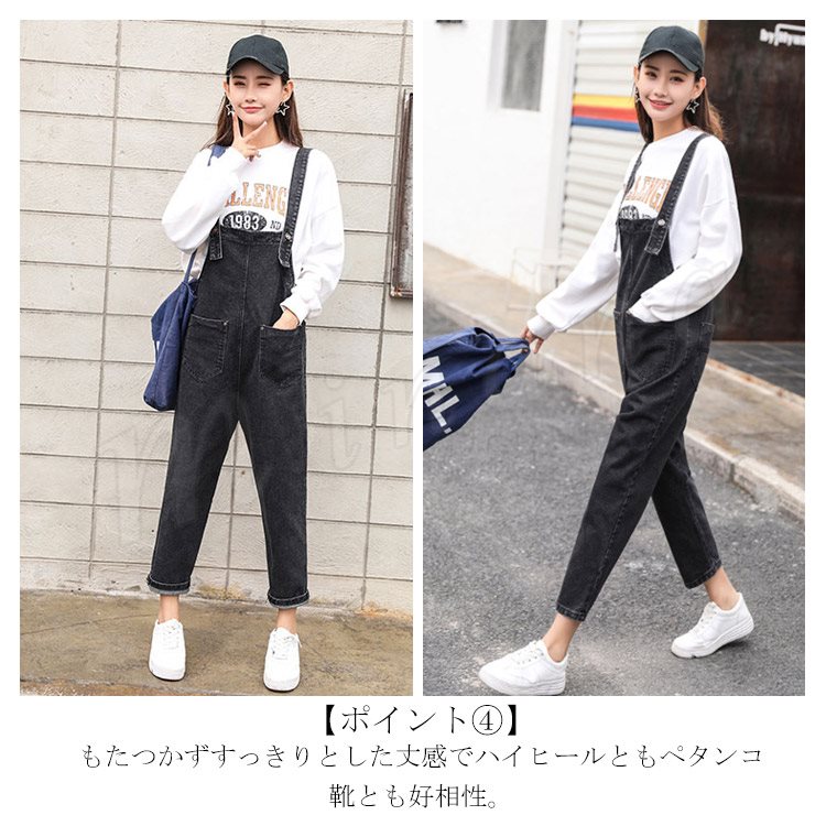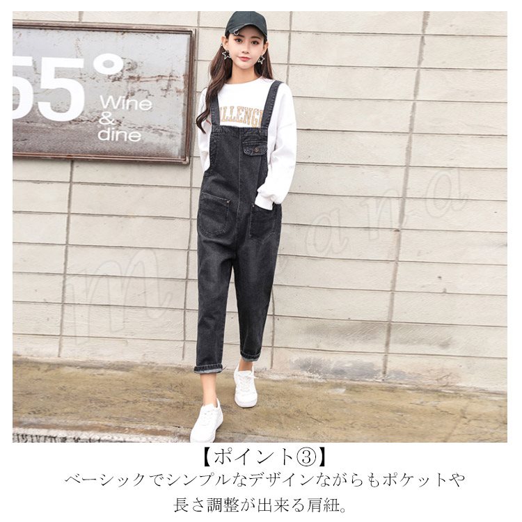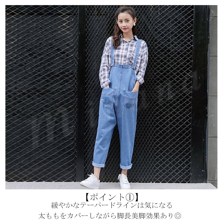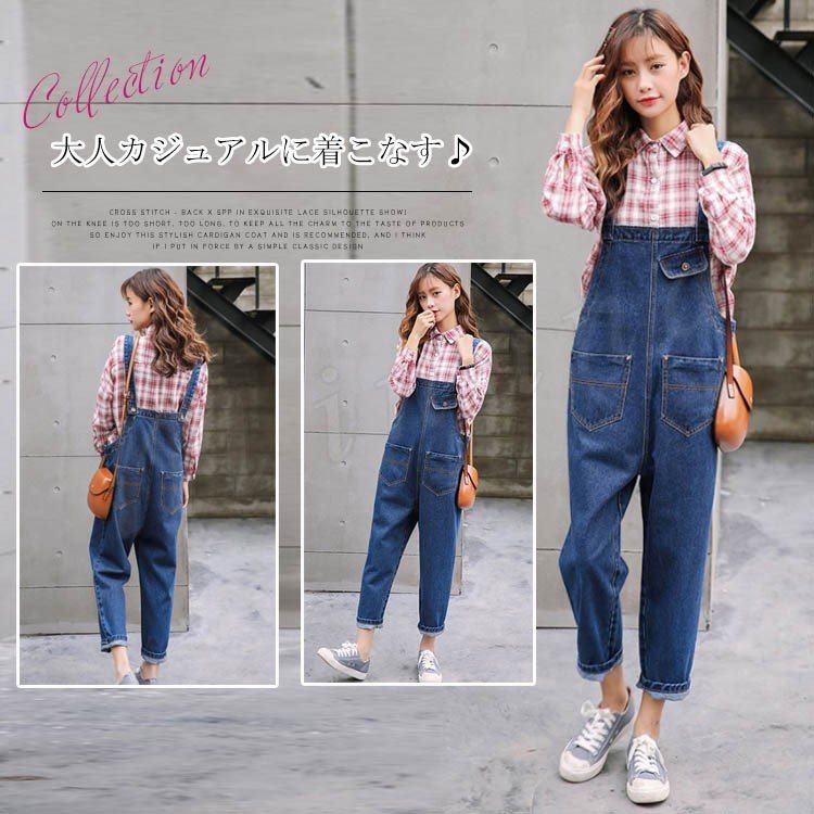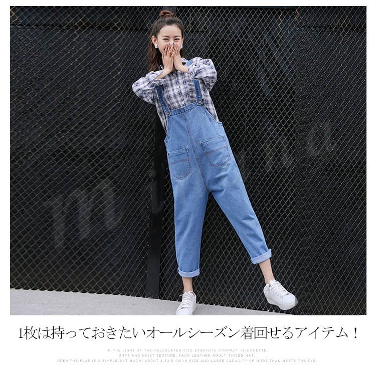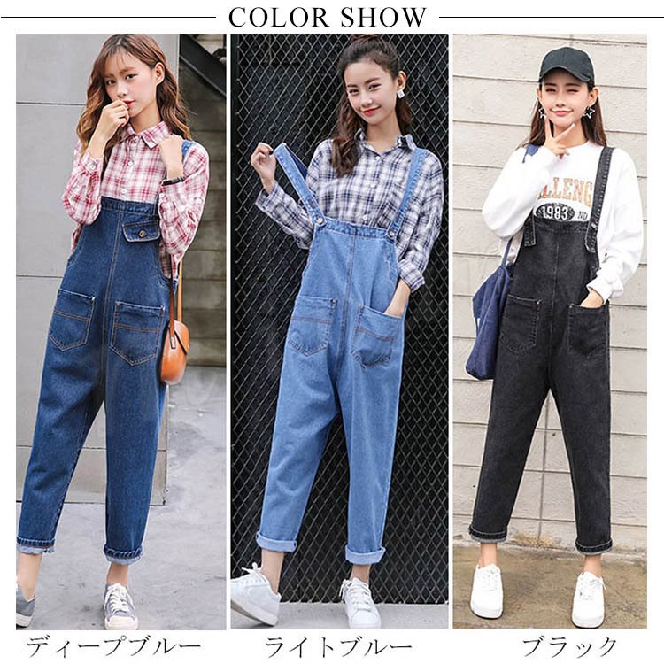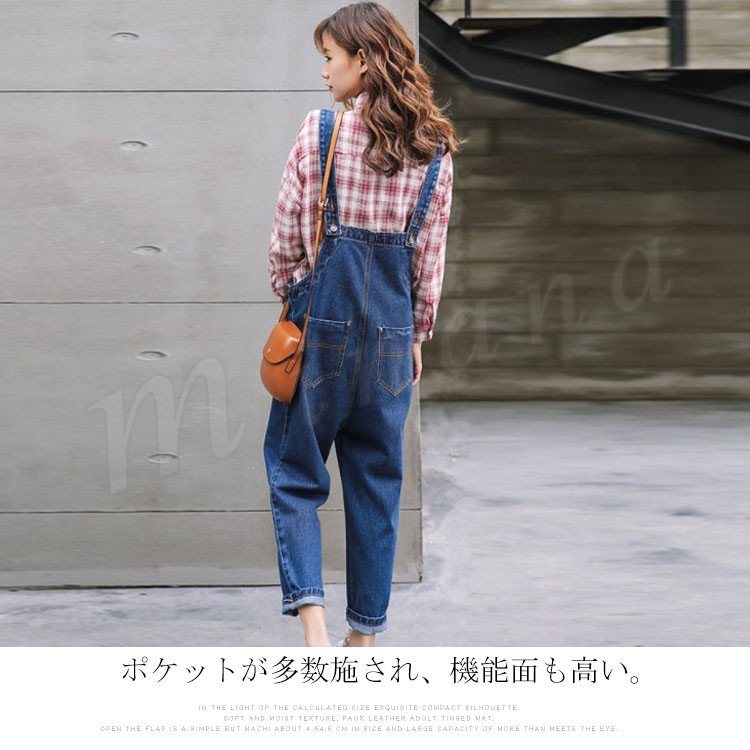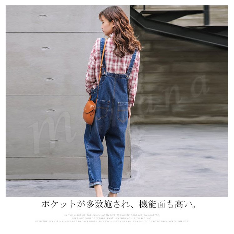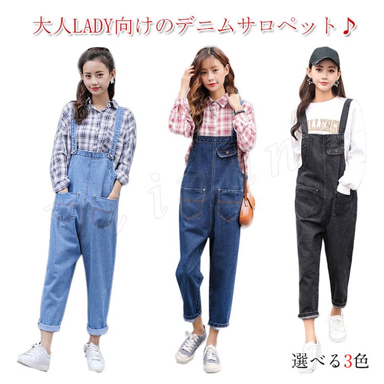 [3色展開]オーバーオール デニムサロペット オールインワン レディース 春秋 ボトムス パンツ アンクル丈 ゆったり ワイドクロップドパンツ 大人カ