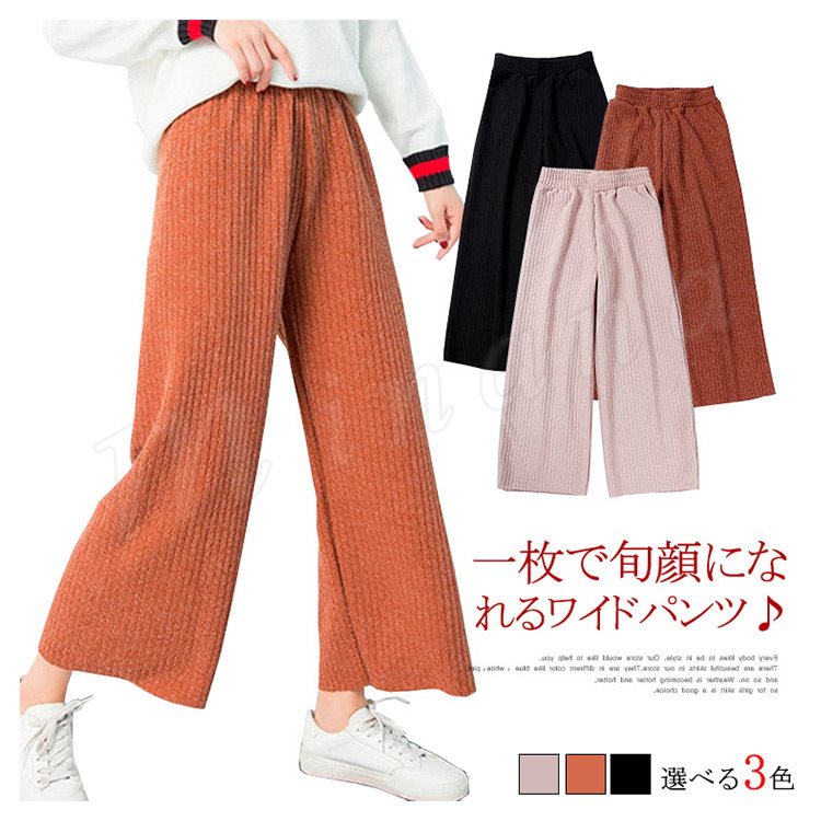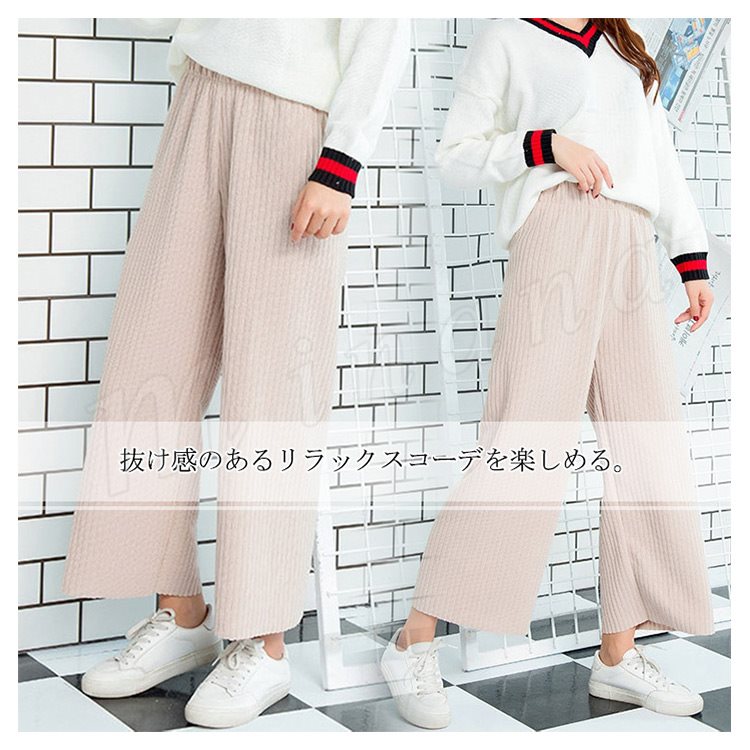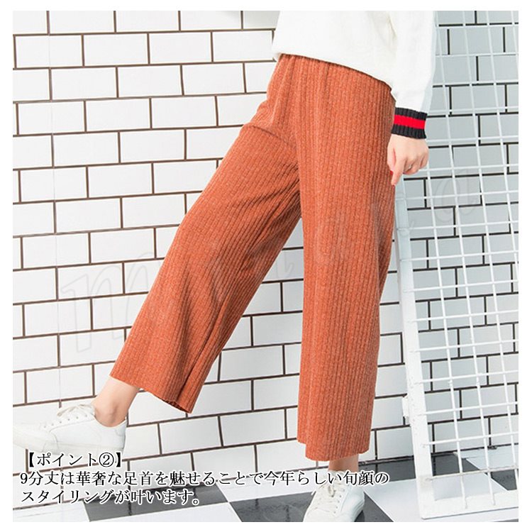 [3色展開]ワイドパンツ スカンツ スカーチョ レディース 春秋 ボトムス パンツ ミドル丈 ハイウエスト ゆったり ワイドクロップドパンツ 大人カジ