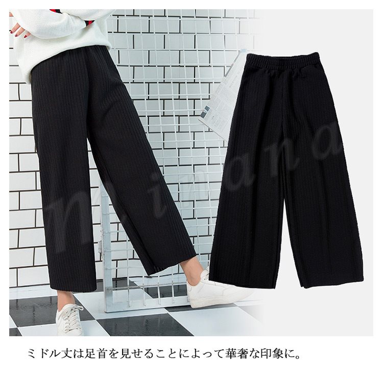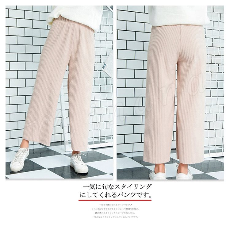 | 一枚で旬顔になれるワイドパンツ♪ ミドル丈は足首を見せることによって華奢な印象に。 抜け感のあるリラックスコーデを楽しめる。 一気に旬なスタイリングにしてくれるパンツです。 | |