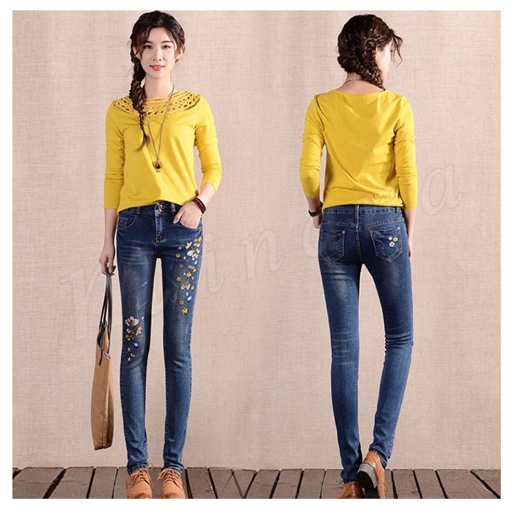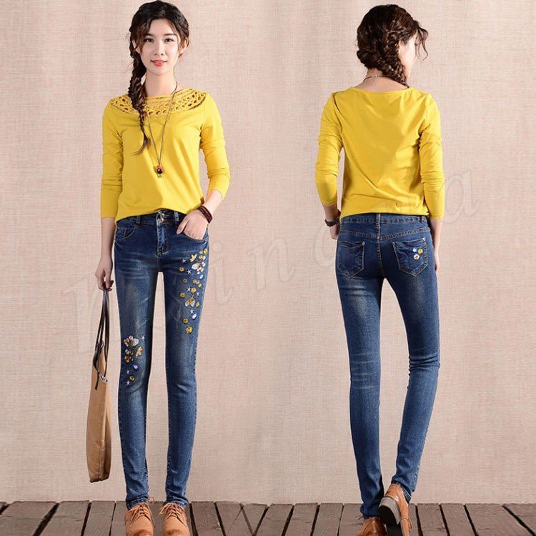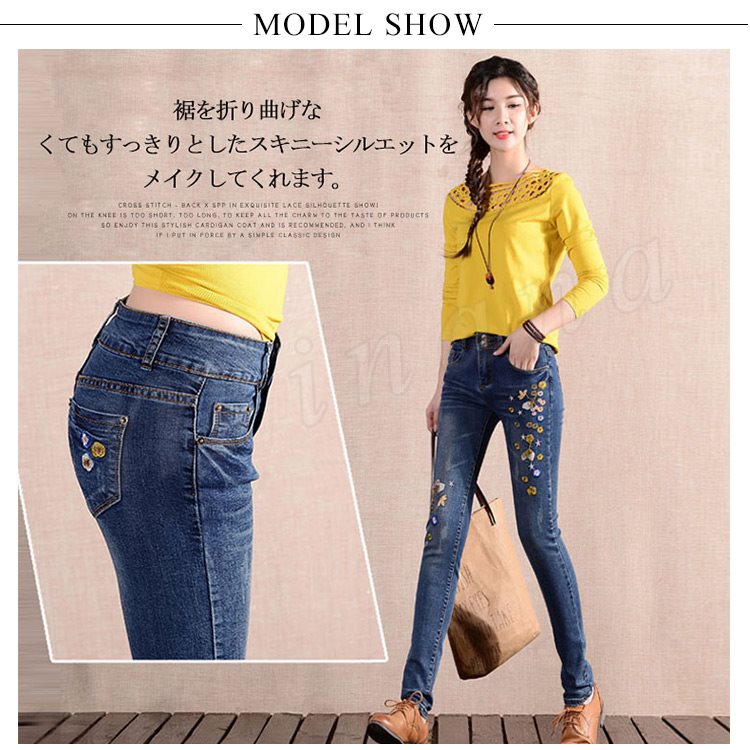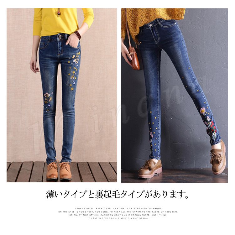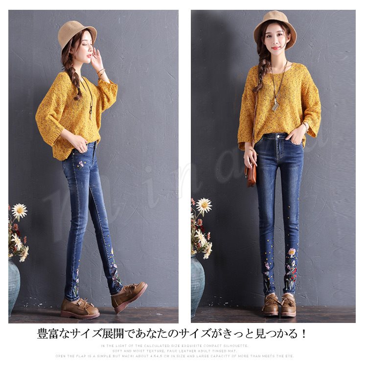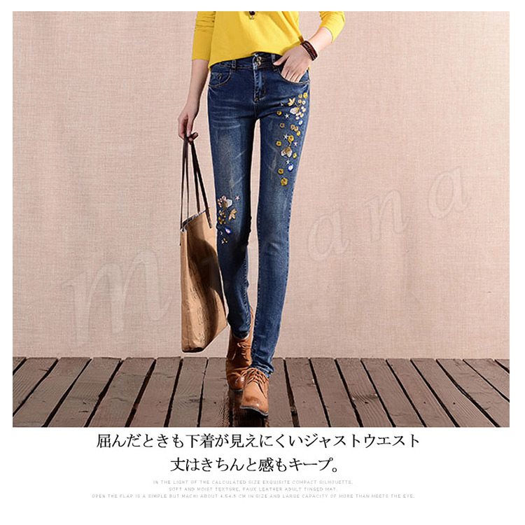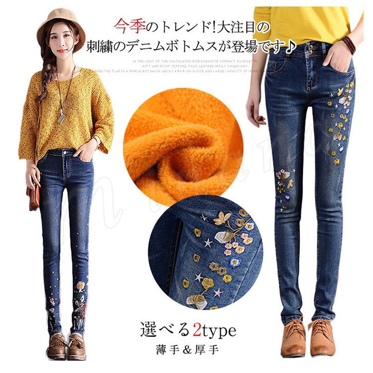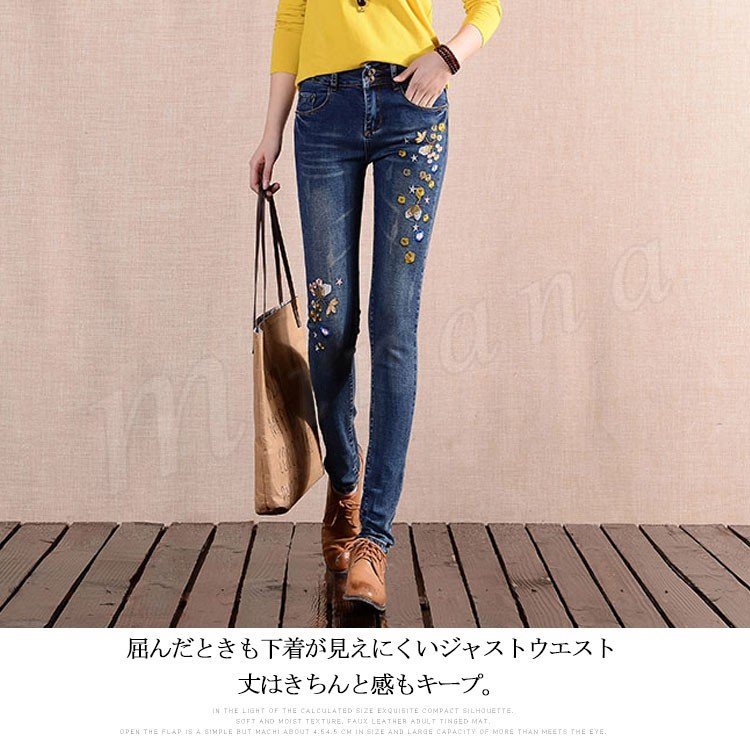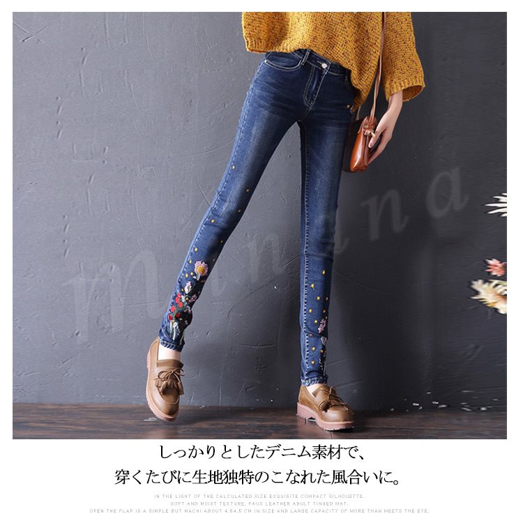 美脚が叶うデニムスキニー!刺繍パンツ デニムパンツ レディース ボトムス ジーンズ ロングパンツ スキニーパンツ 刺繍 刺しゅう ストレッチ 春 秋