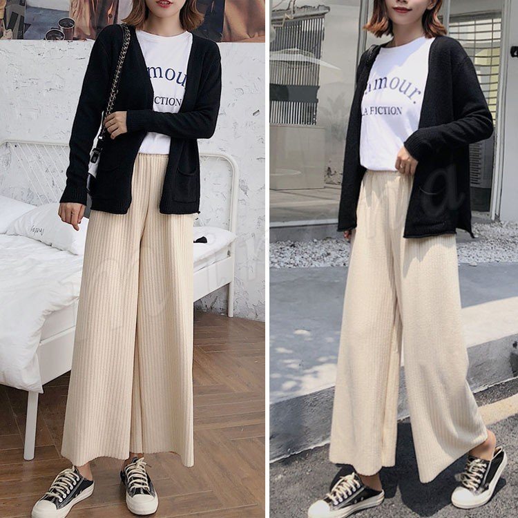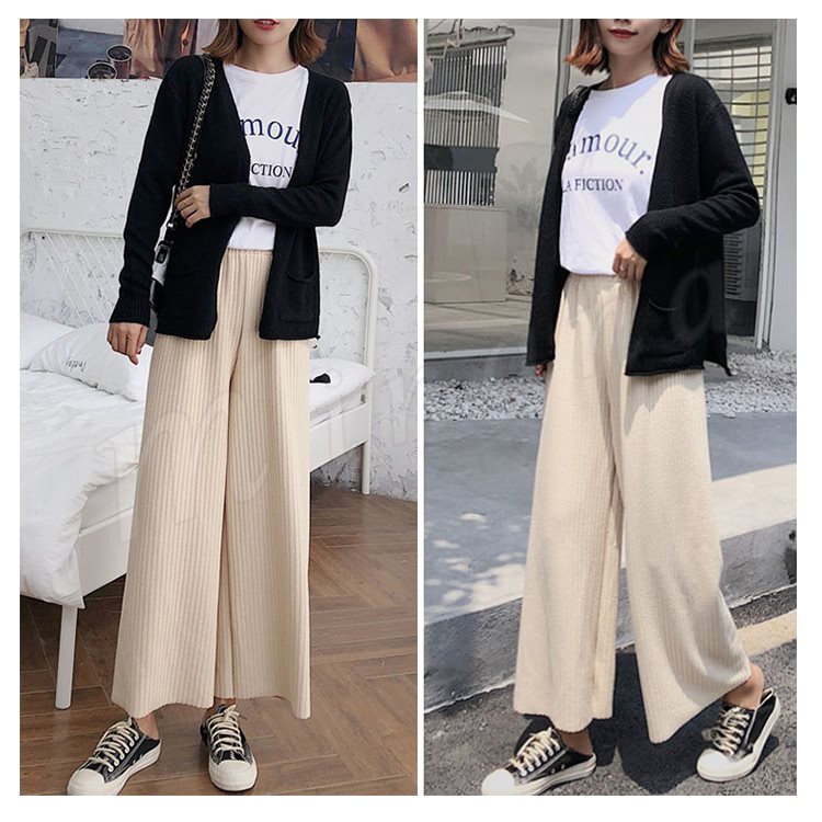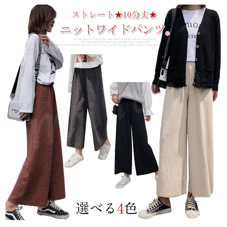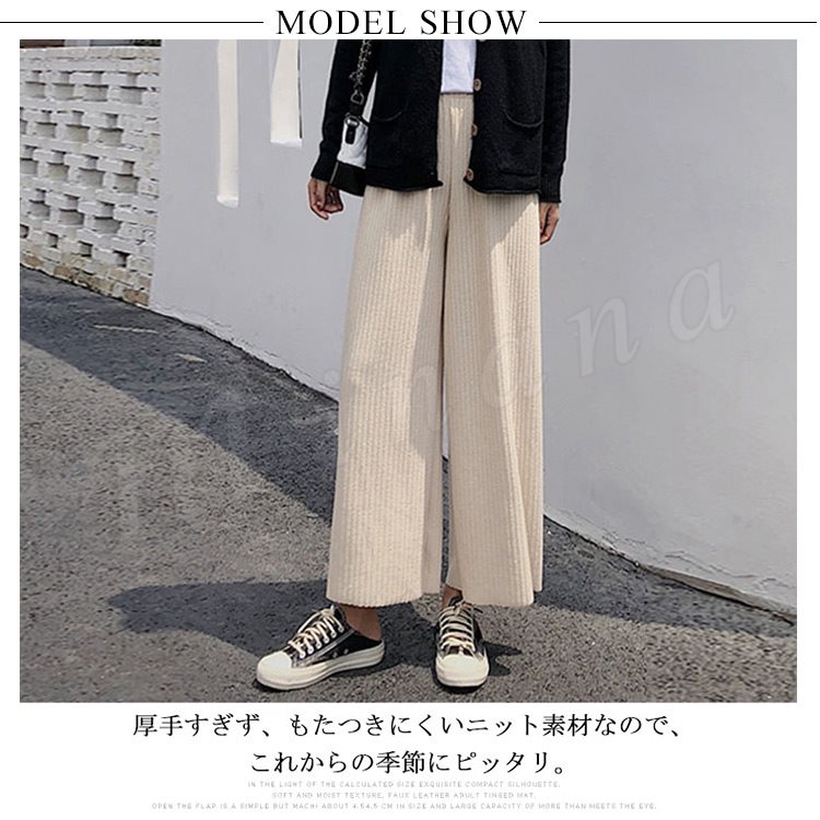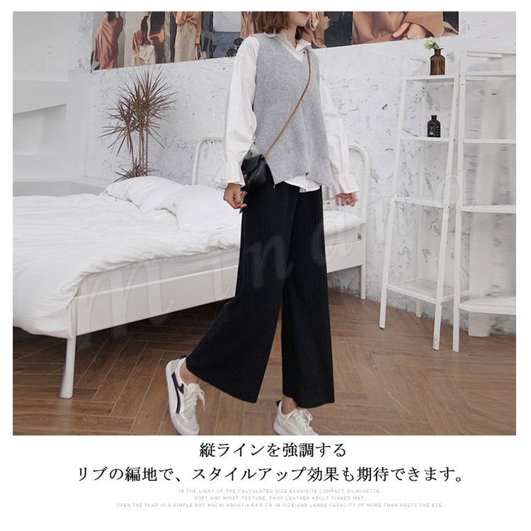 ストレート★10分丈★ニットワイドパンツ。