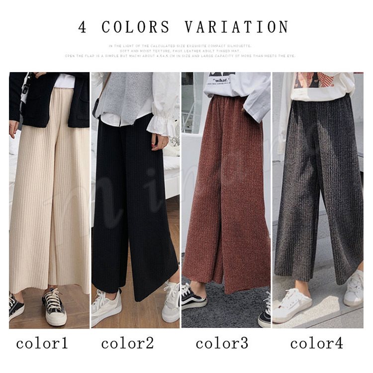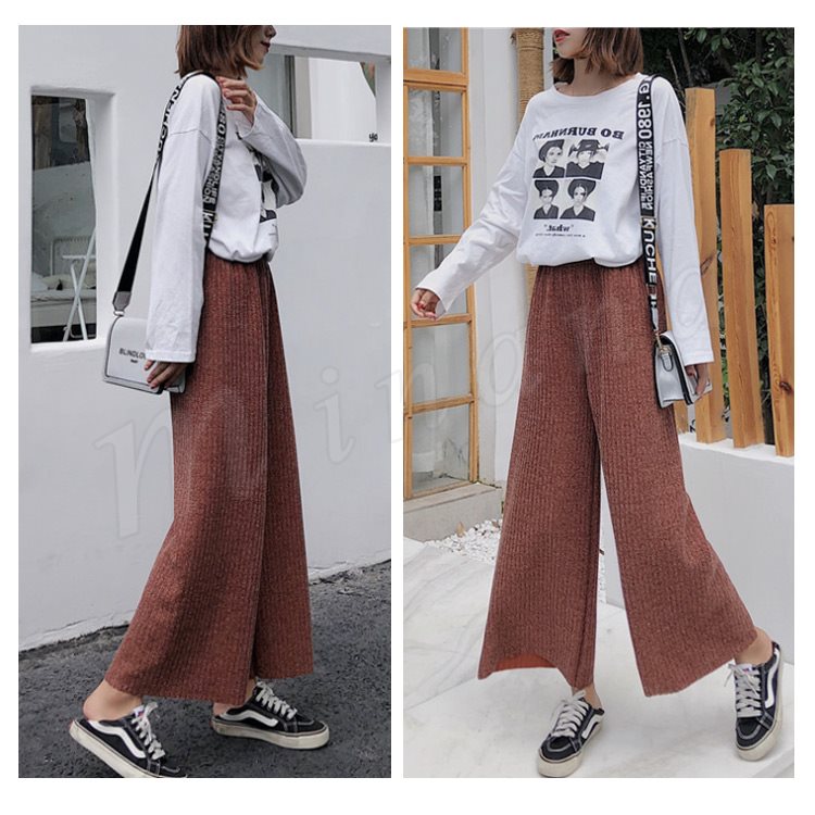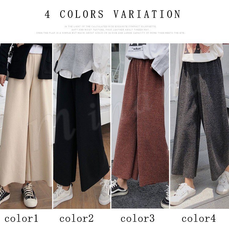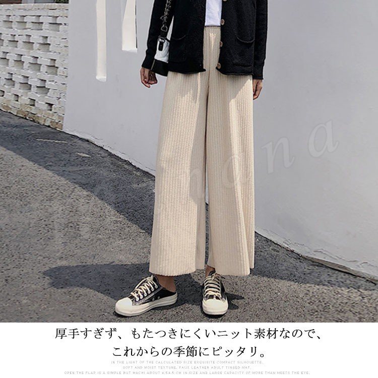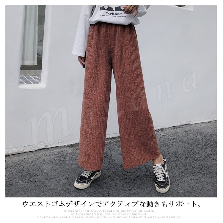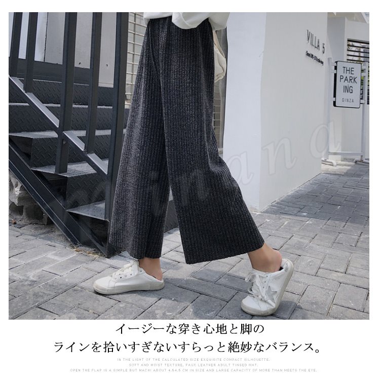 ワイドパンツ ニットパンツ ロング丈 レディース ガウチョ フレアパンツ リブパンツ ボトムス カジュアル ウエストゴム