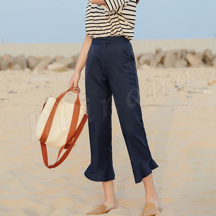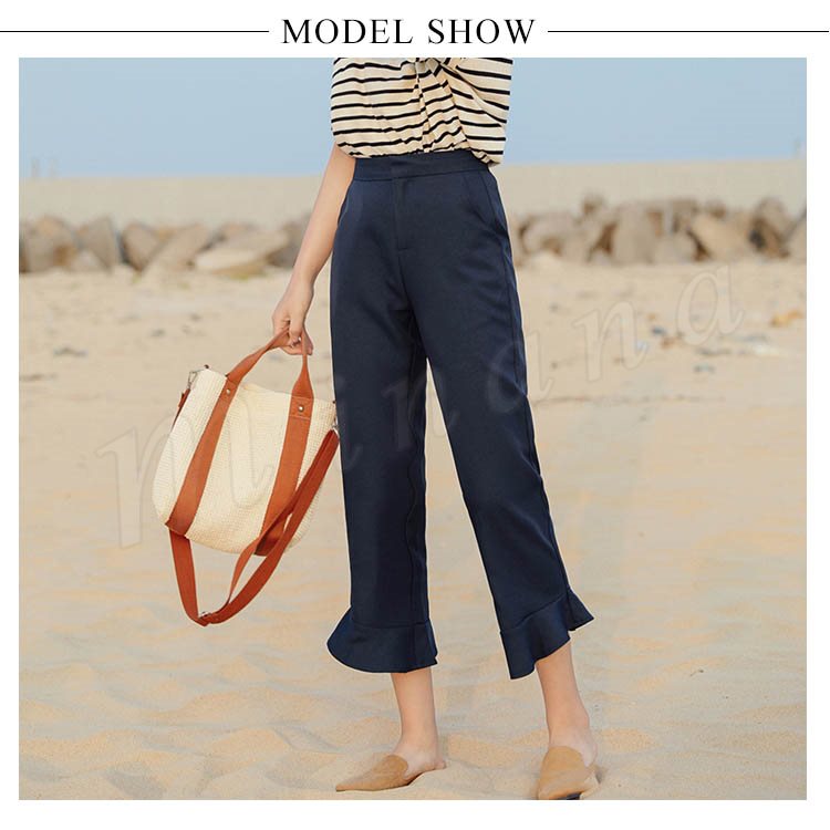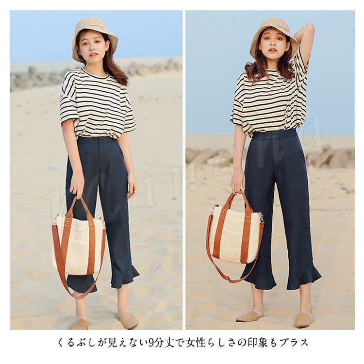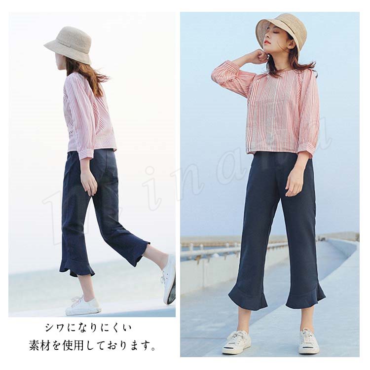 フリルアンクルパンツ スラックスパンツ テーパードパンツ 9分丈 ボトムス パンツ テーパード シンプル 無地 通勤 春 夏 秋 大人 女性