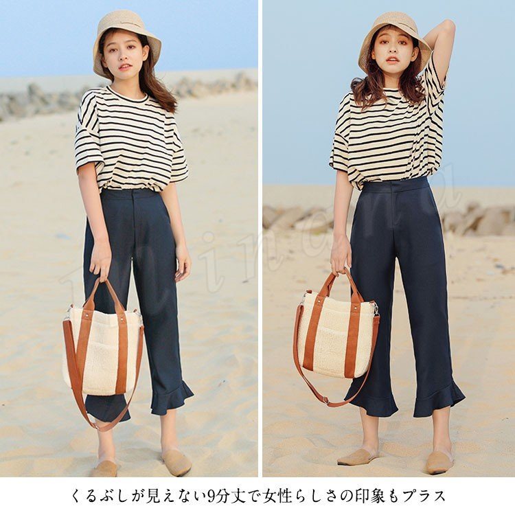 くるぶしが見えない9分丈で女性らしさの印象もプラス
