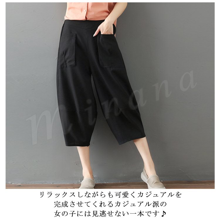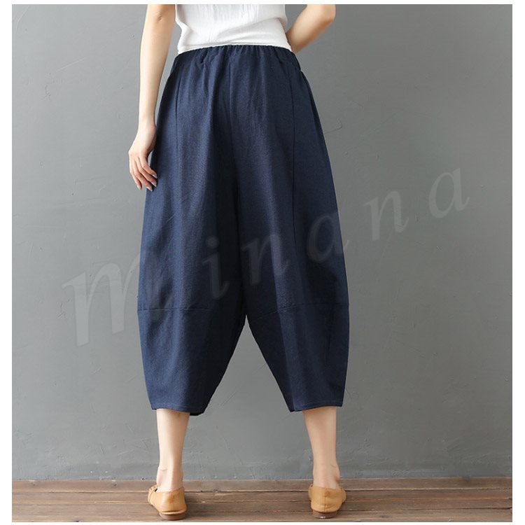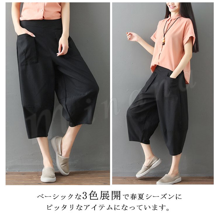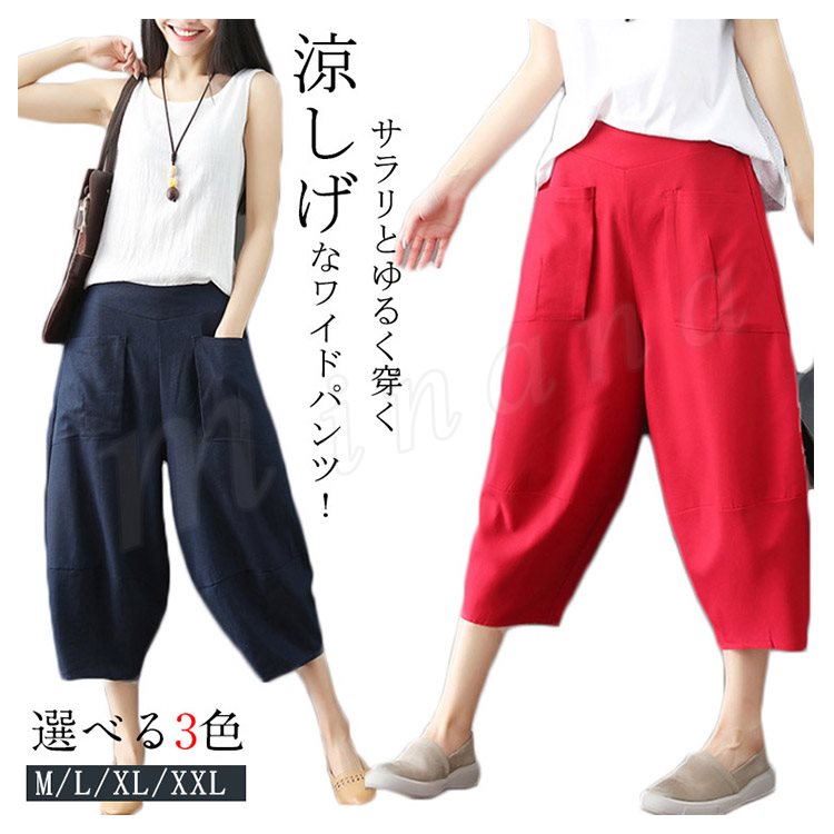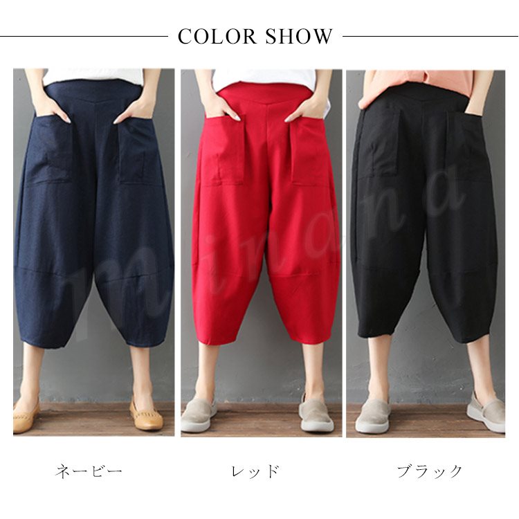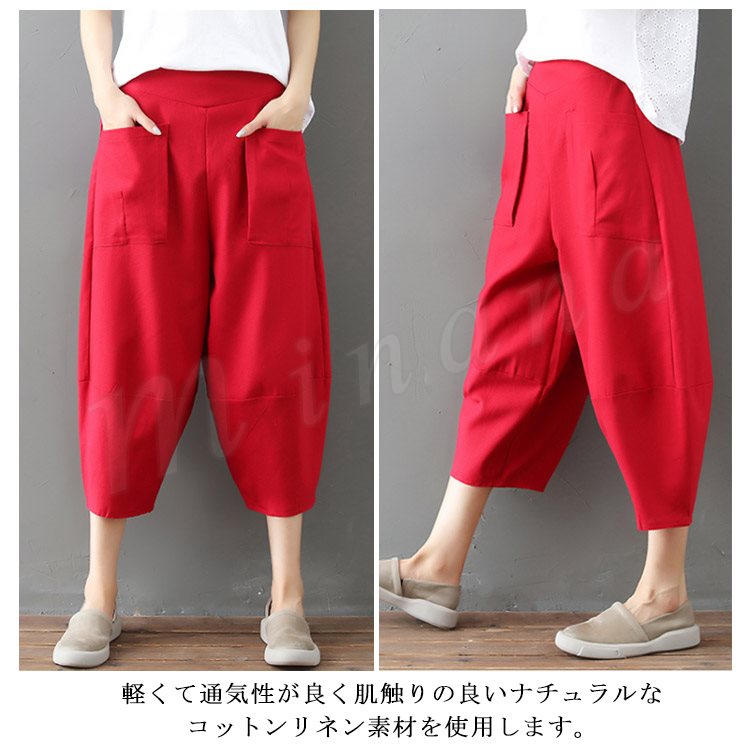 パンツ レディース 綿麻ボトムス 七分丈パンツ かぼちゃパンツ ワイドパンツ サルエルパンツ リネン 大きサイズ 体型カバー ゆったり カジュアル 春