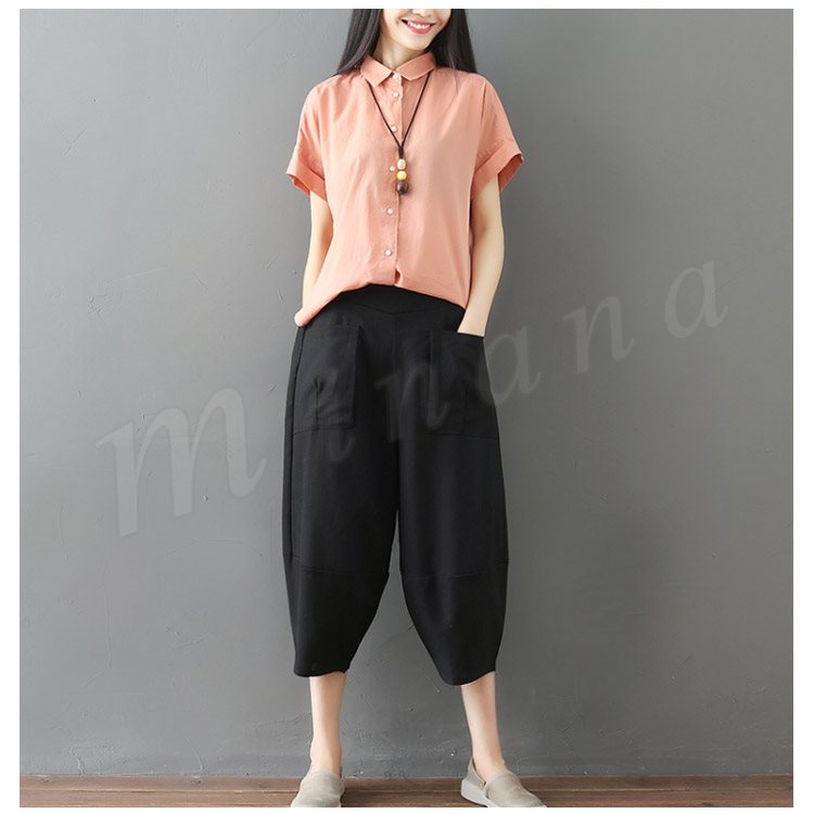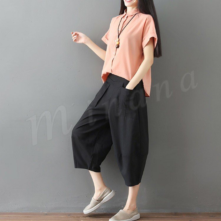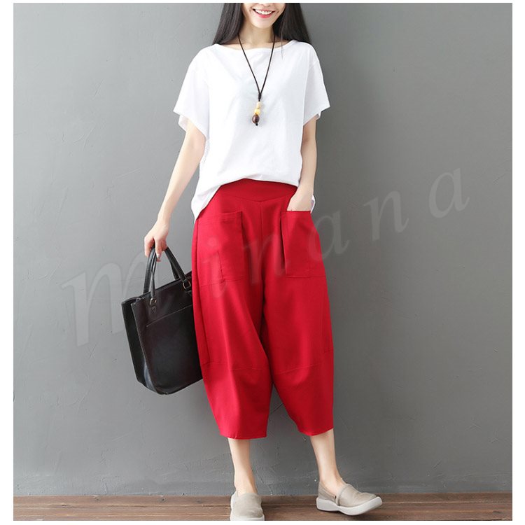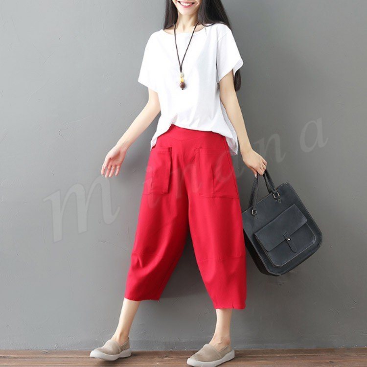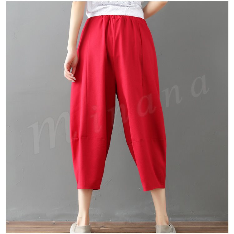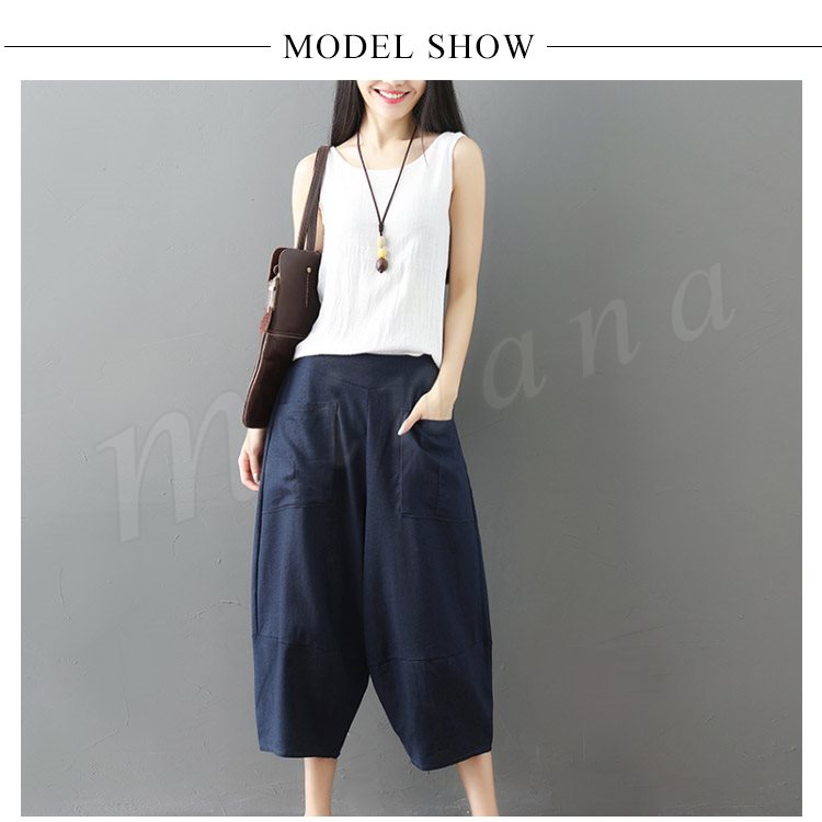 パンツ レディース 綿麻ボトムス 七分丈パンツ かぼちゃパンツ ワイドパンツ サルエルパンツ リネン 大きサイズ 体型カバー ゆったり カジュアル 春