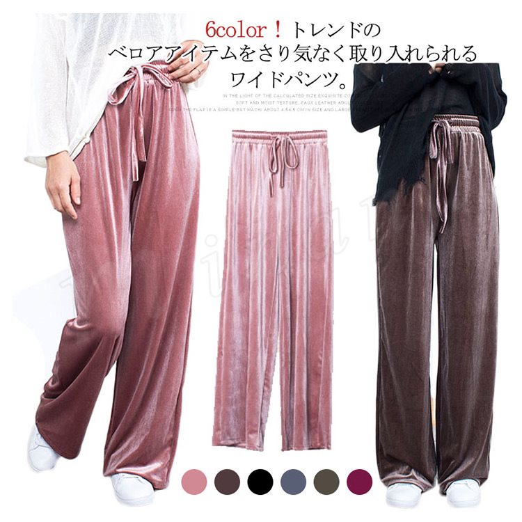 全6color!トレンドのベロアアイテムをさり気なく取り入れられるワイドパンツ。