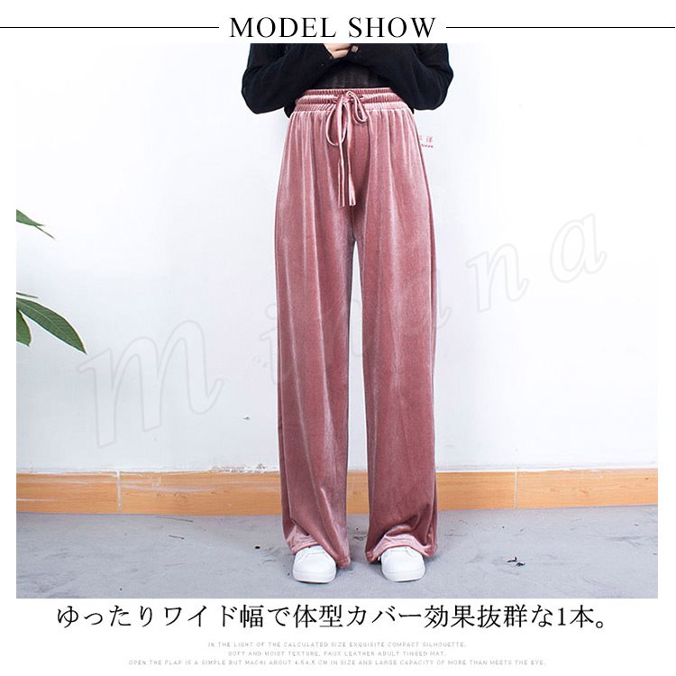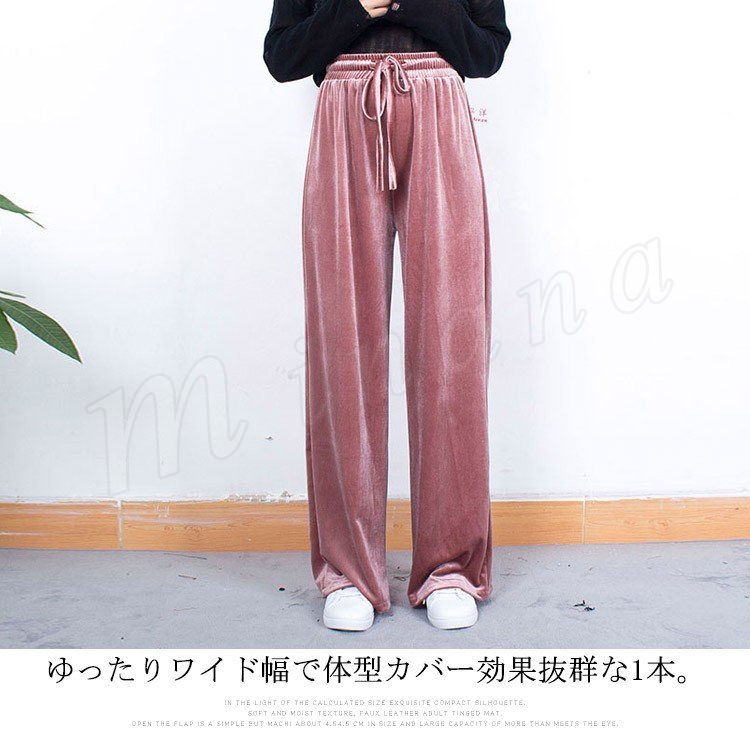 ベロアロングパンツ ベロアワイドパンツ ベロア ワイドパンツ ワイド ロングパンツ レディース ボトムス ズボン パンツ ベロア 大人 女性 体型カバ