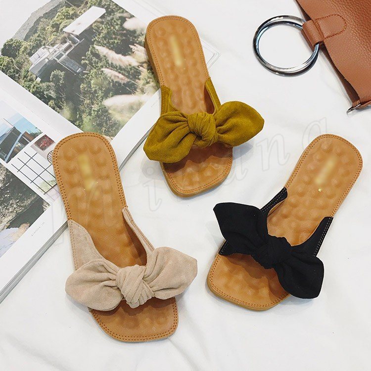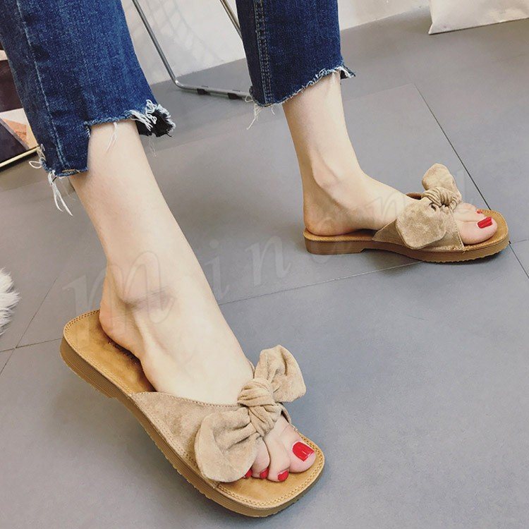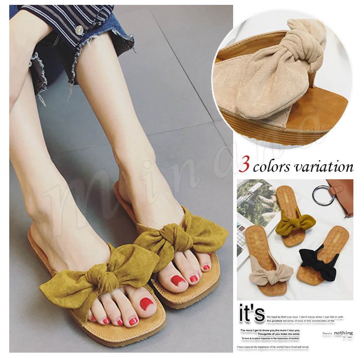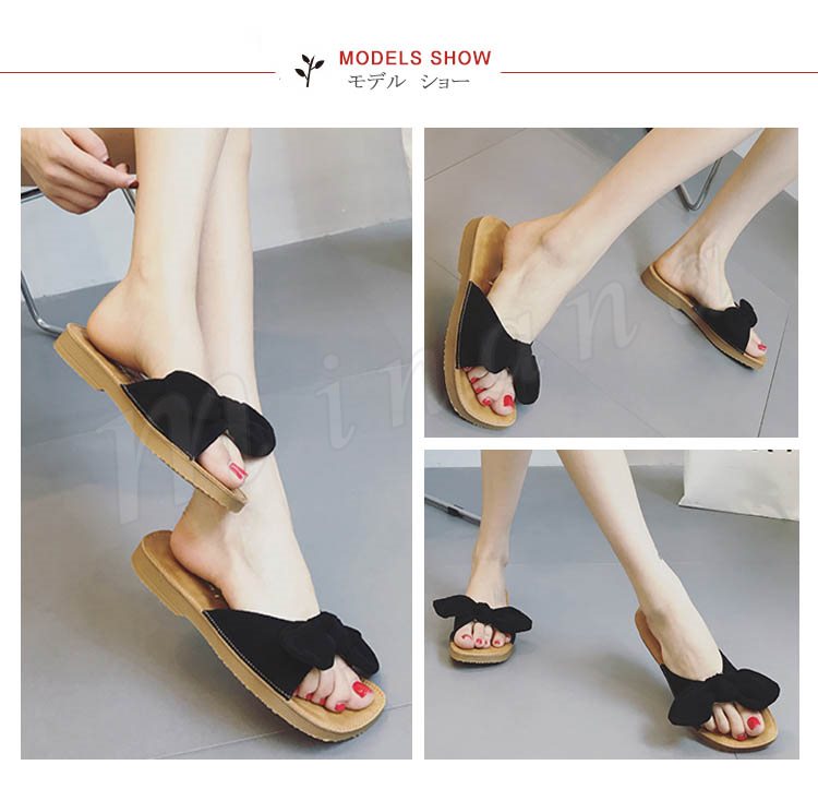 レディース サンダル ミュール ぺたんこ フラット リボン りぼん ローヒール シンプル 美脚 脚長 歩きやすい 疲れない つっかけ 靴 シ