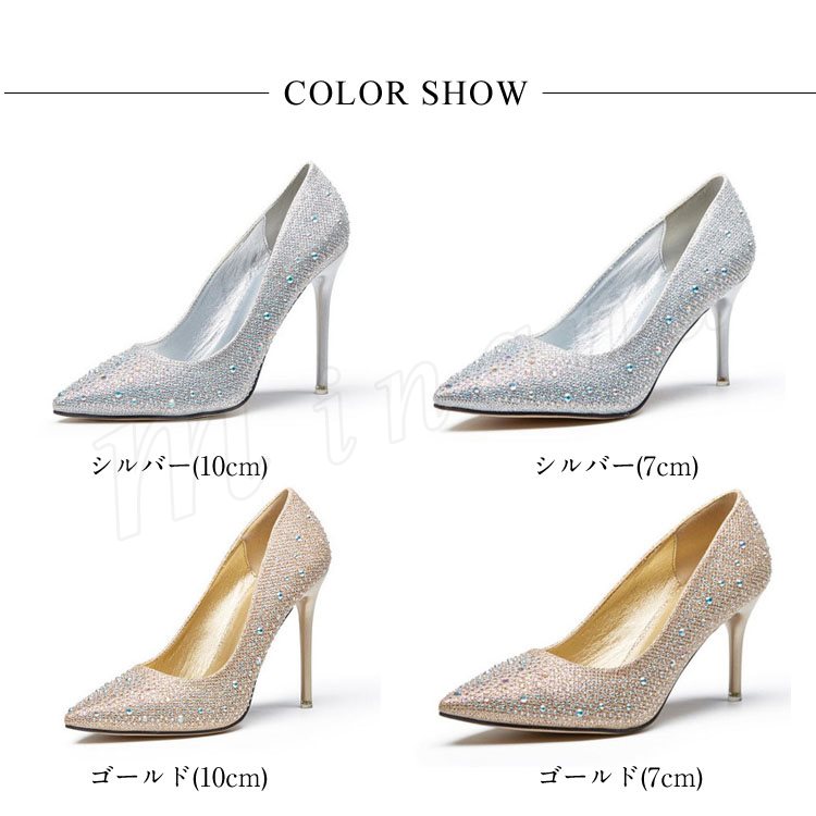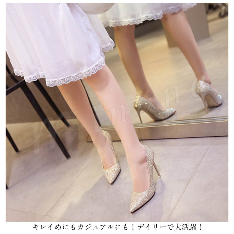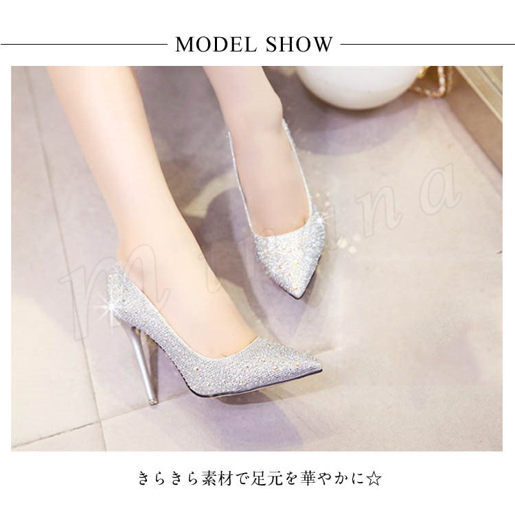 | 7cm&10cmヒール選べる!結婚式やパーティーに大活躍なピンヒールパンプス! きらきら素材で足元を華やかに☆ スリムなトゥラインとハイヒールのセクシーラインが女の色気を漂わせます。 疲れにくいクッションでフィット感のある優しい履き心地。 グリップ力が高くて滑りにくいアウトソールも安心。 キレイめにもカジュアルにも!デイリーで大活躍! | |