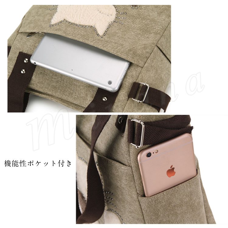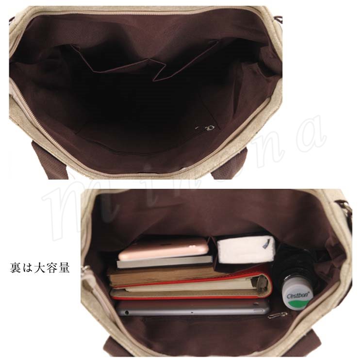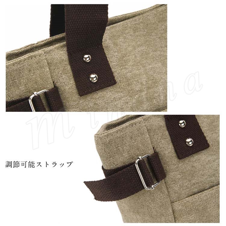 | 耐久性が高いキャンバストートバッグは今大流行です。 バッグの中のスペースは大きくて大容量です。 バッグの片側には小さなポケットが付きます。 鍵とコインなどの小物が入れて超便利です。 一つのバッグは多機能でファッションだけではなくて実用です。 | |