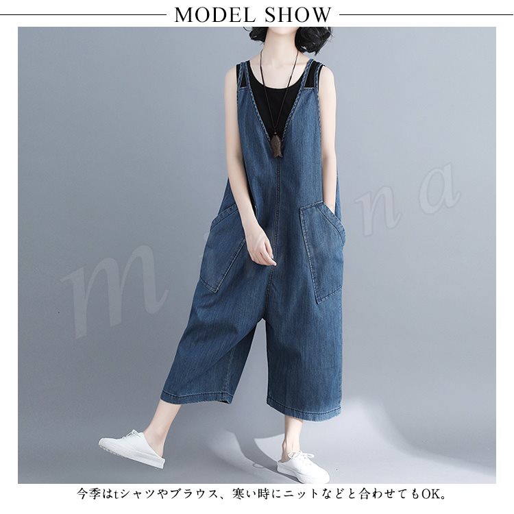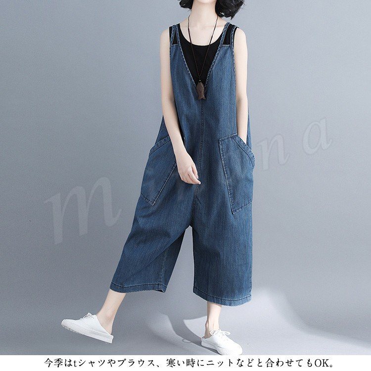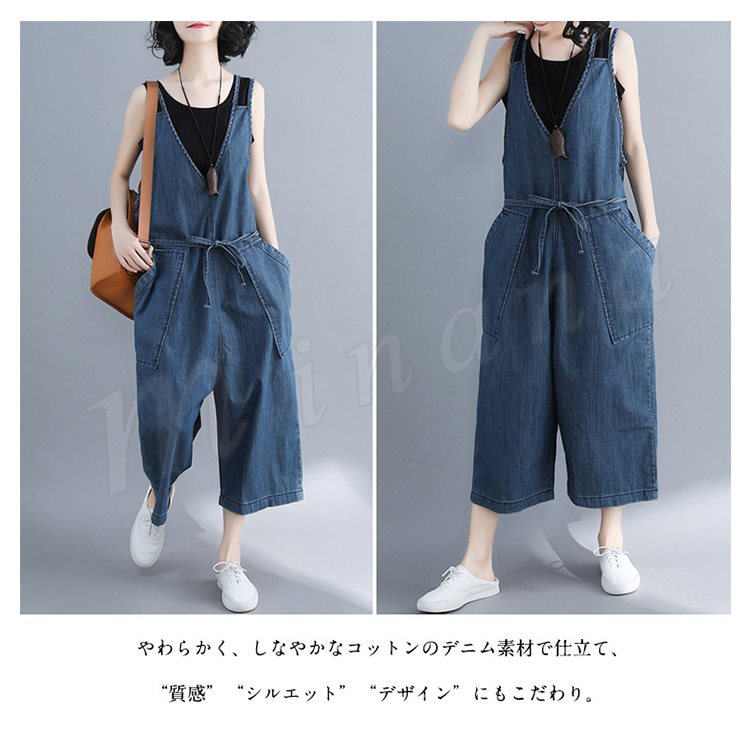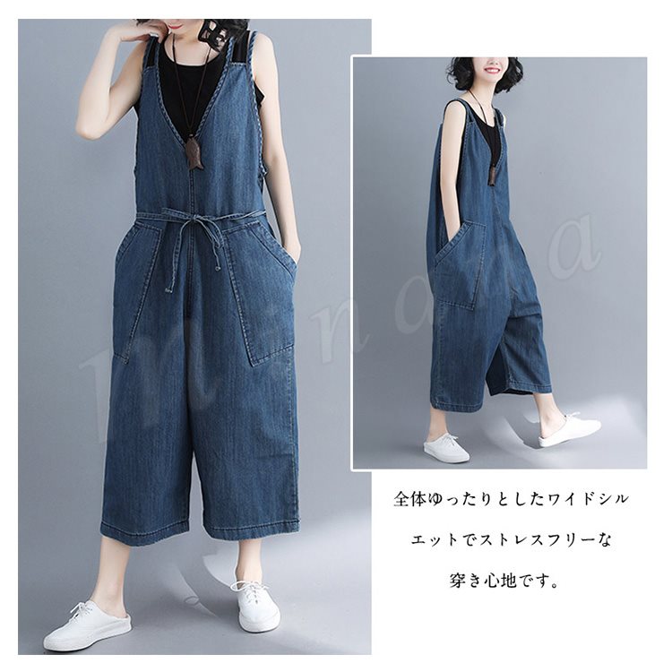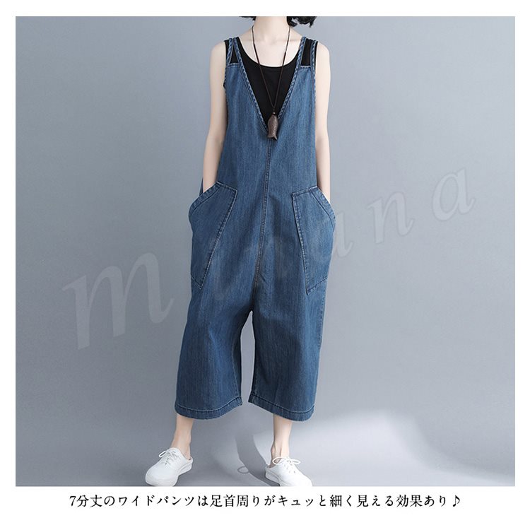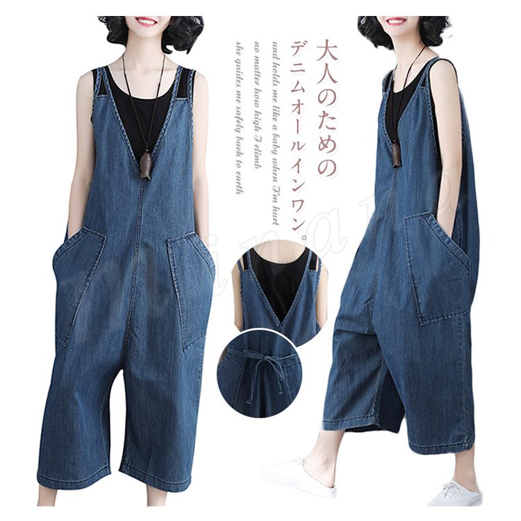 デニムオールインワン オールインワン ワイドパンツ デニム オールインワンワイドパンツ ガウチョパンツ クロップド つなぎ Vネック サロペット ボト