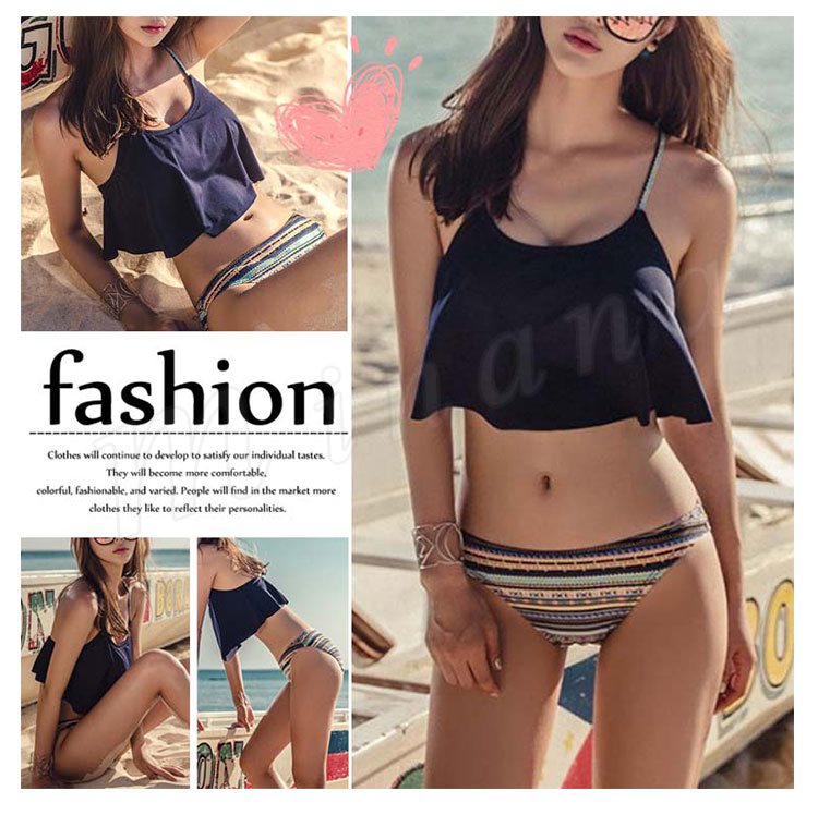 レディース 水着 ビキニ フリル 無地 エスニック スイムウェア 海水浴 プール 夏 新作