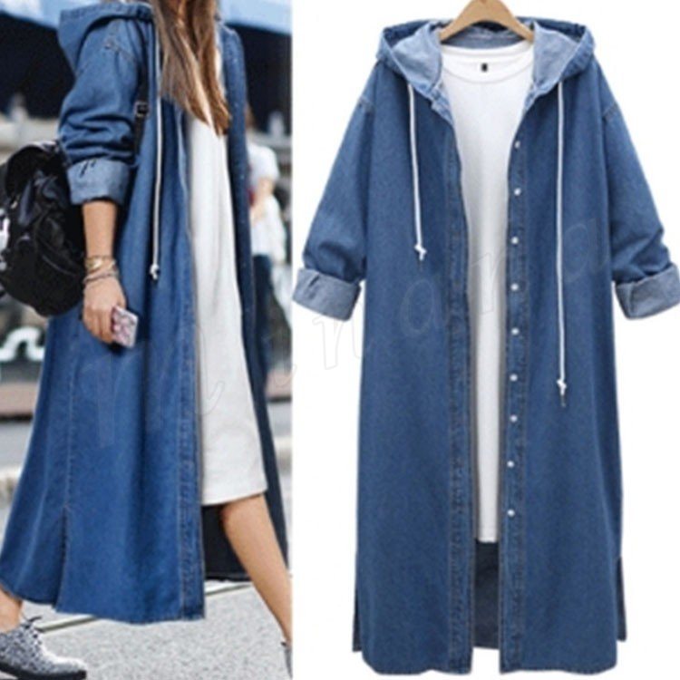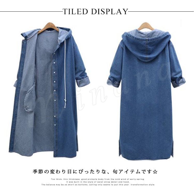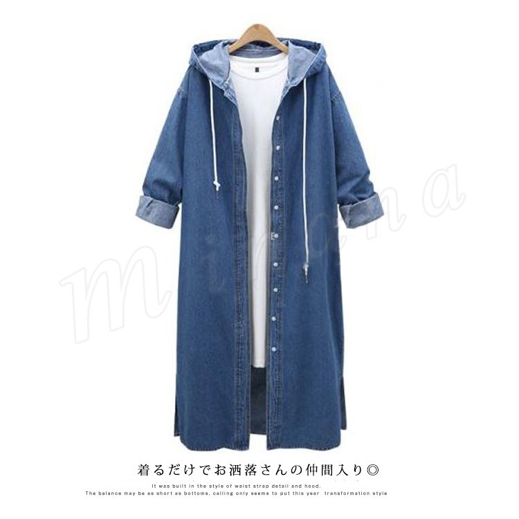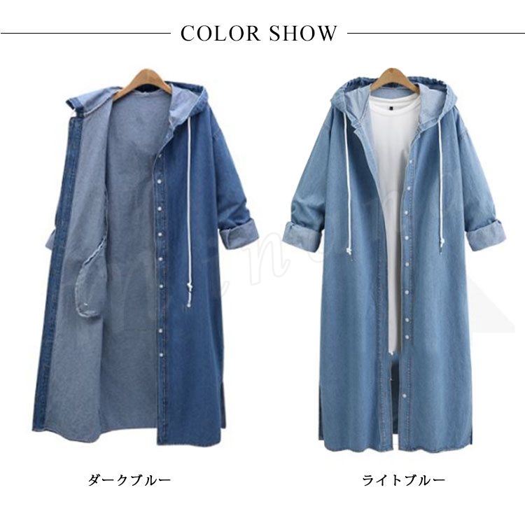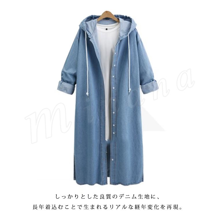 デニムコート デニムジャケット ロング丈 デニム ロングコート パーカー チェスターコート レディース フード付き デニムコート スプリングコート G