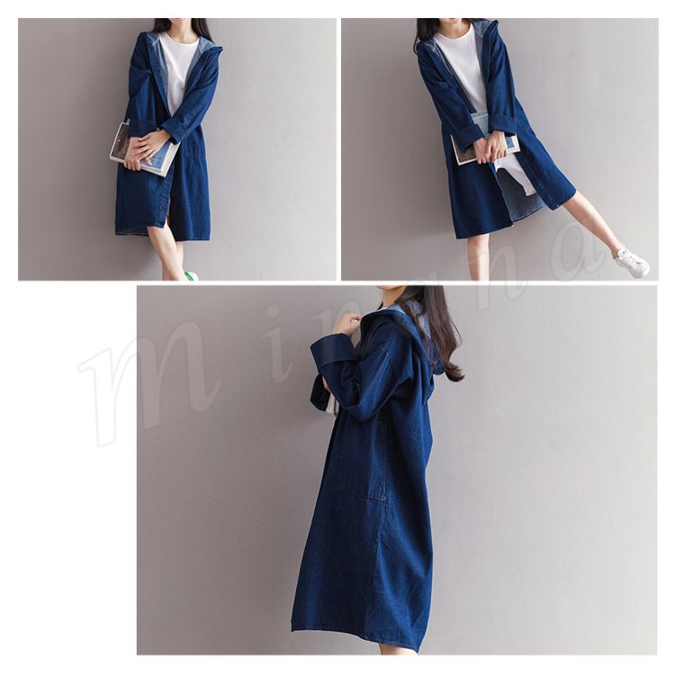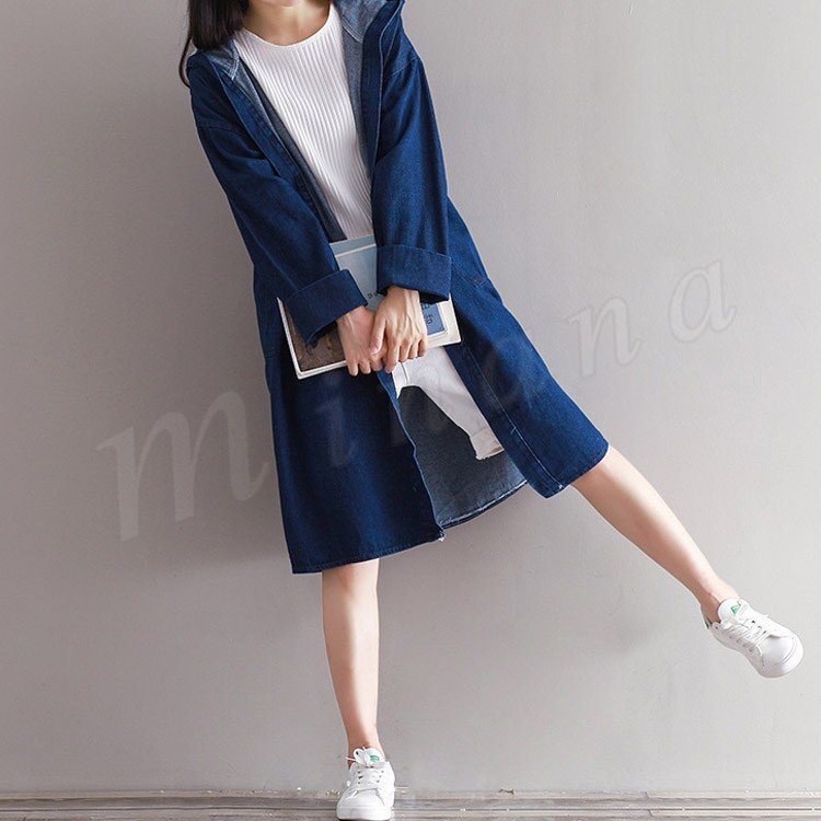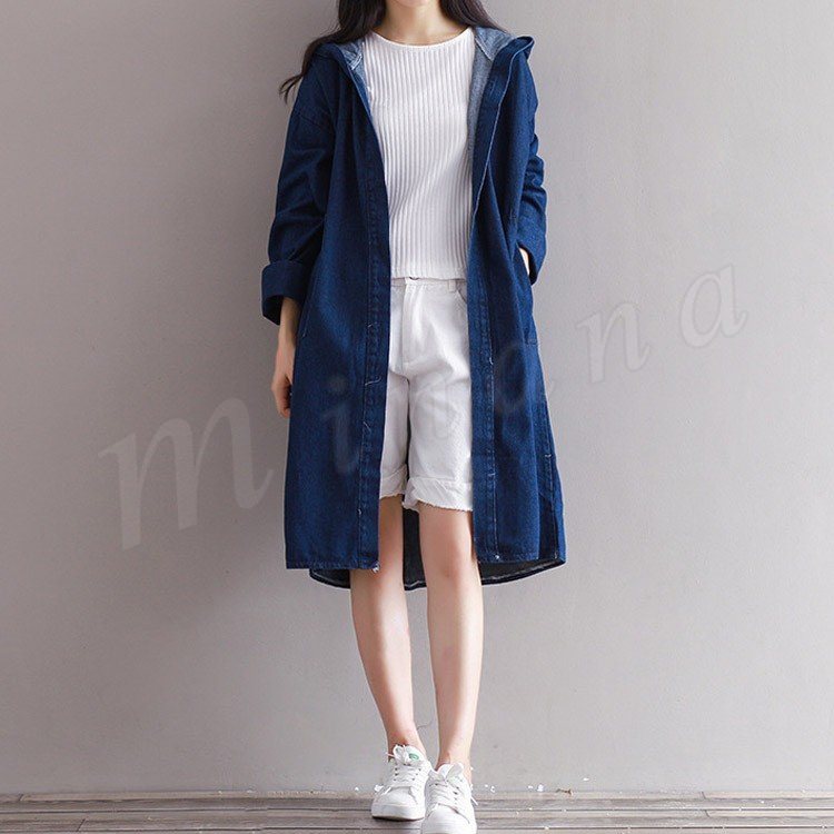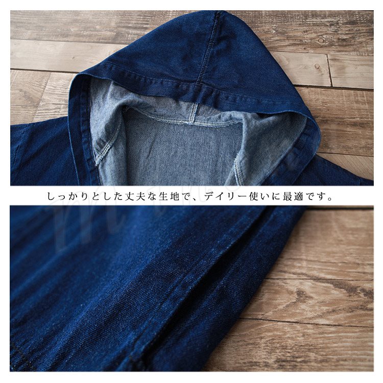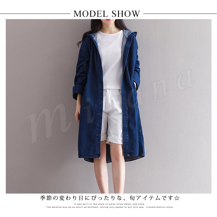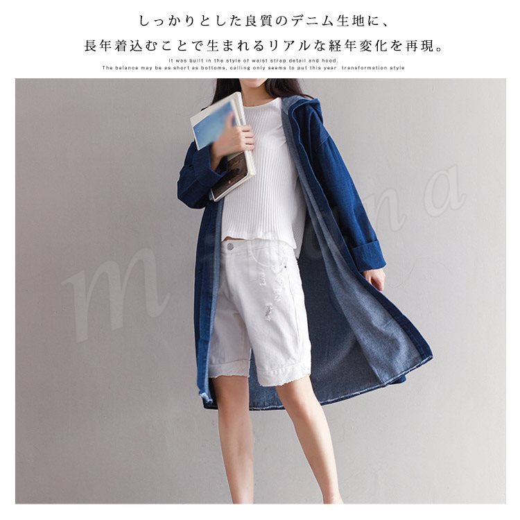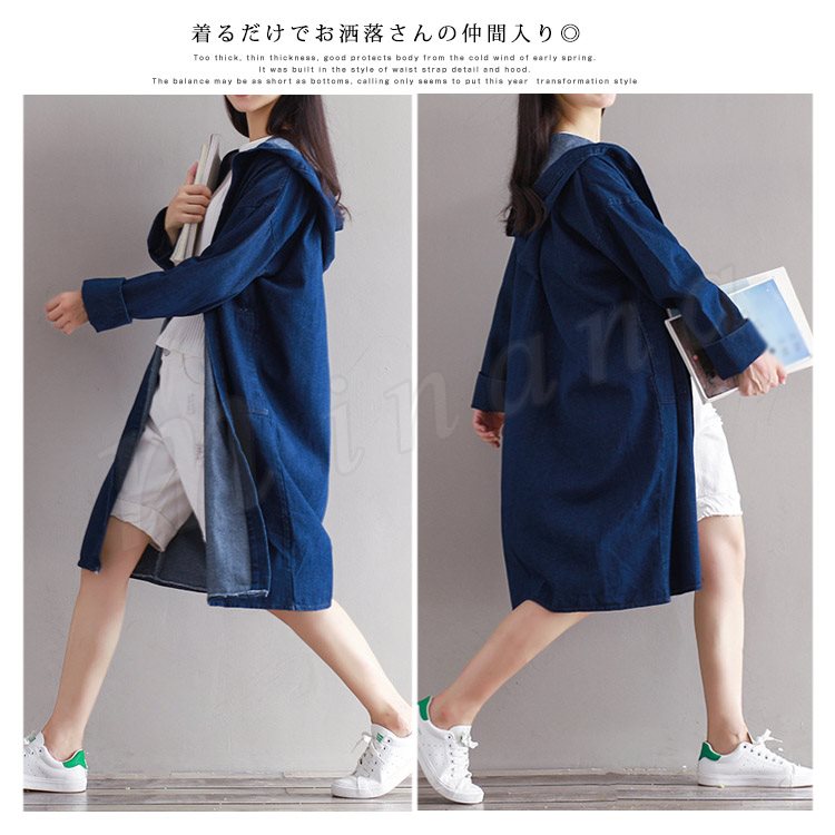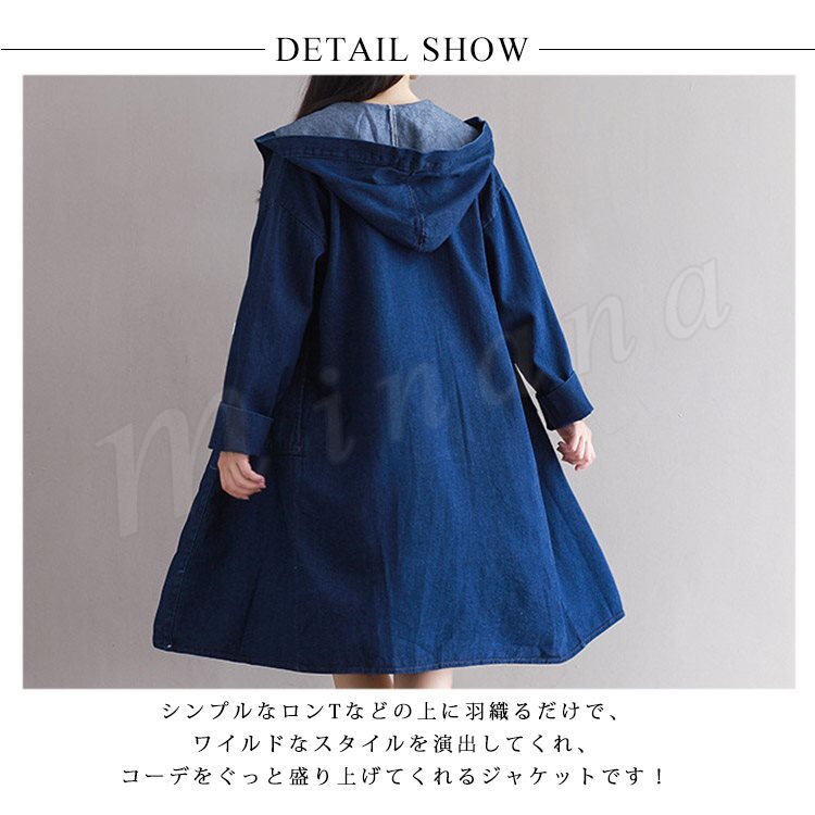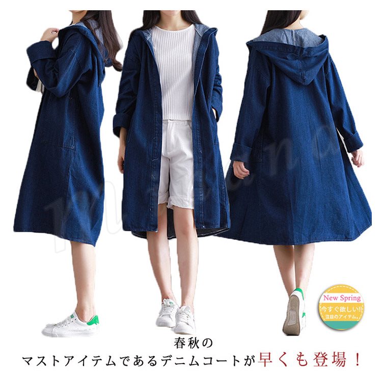 ロング丈 デニムコート レディース デニムジャケット デニム ロングコート チェスターコート パーカー フード付き デニムコート スプリングコート G