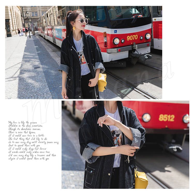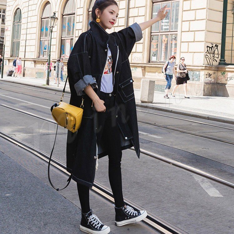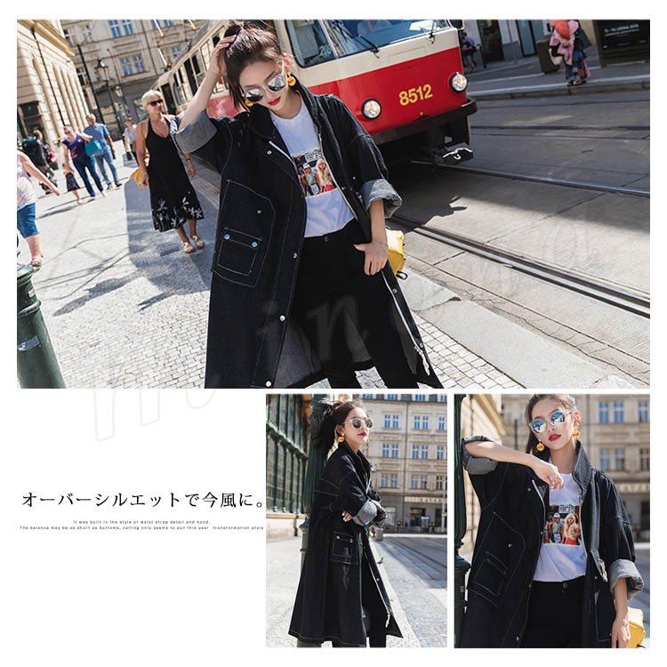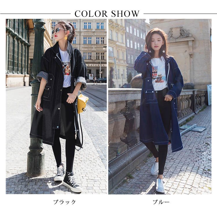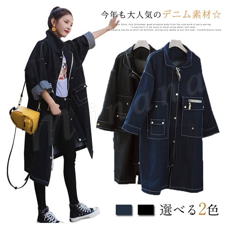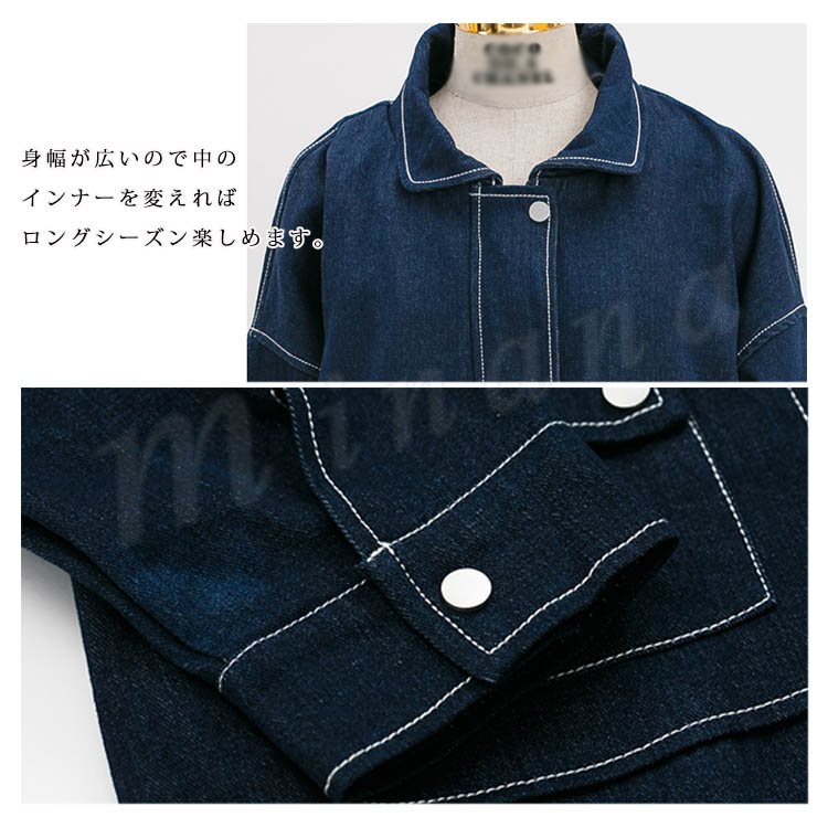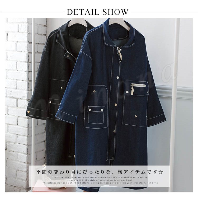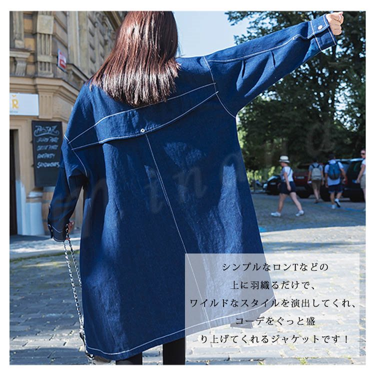 | 今年も大人気のデニム素材☆ さらっと軽く羽織れる生地感ですので、少し肌寒い季節の軽アウターにピッタリ! オーバーシルエットで今風に。 ロング丈のゆったりなサイズ感でルーズなお洒落さを演出。 | |