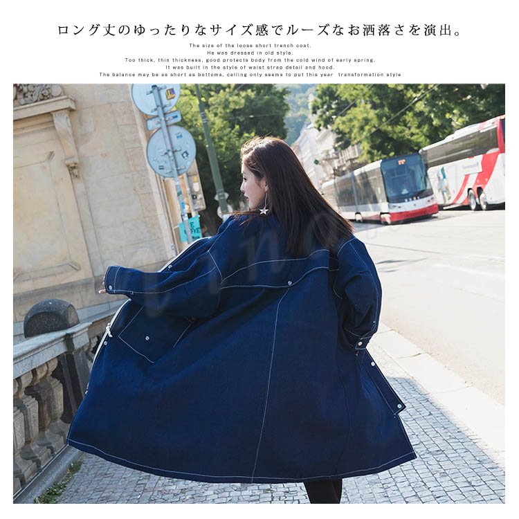 デニム チェスターコート デニムコート ロング丈 レディース デニム ロングコート デニムジャケット パーカー スプリングコート Gジャン アウター
