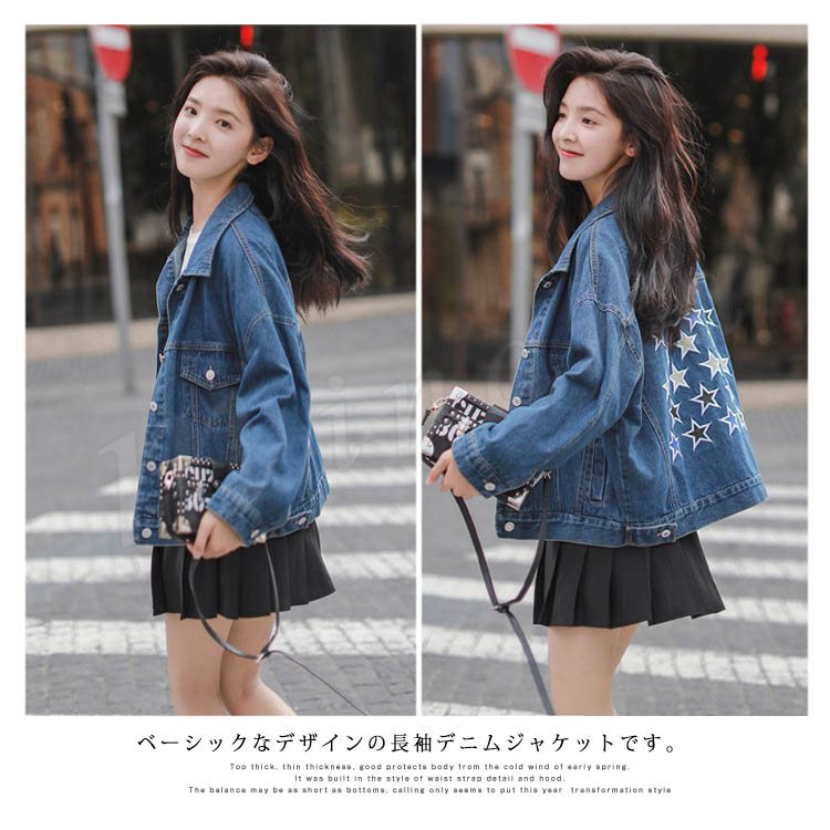 ベーシックなデザインの長袖デニムジャケットです。