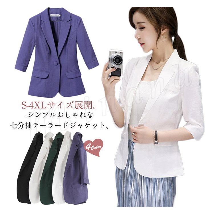S-4XLサイズ!七分袖テーラードジャケット レディースジャケット サマージャケット レディース テーラードジャケット 七分袖 アウター コート ジャ