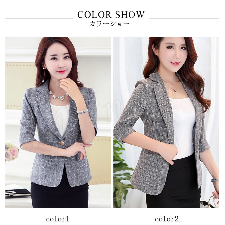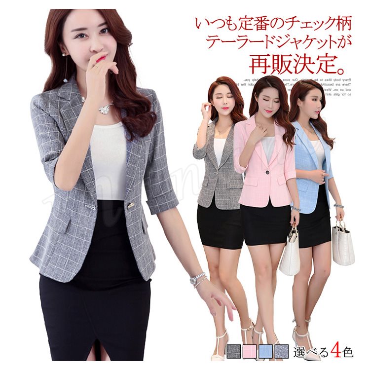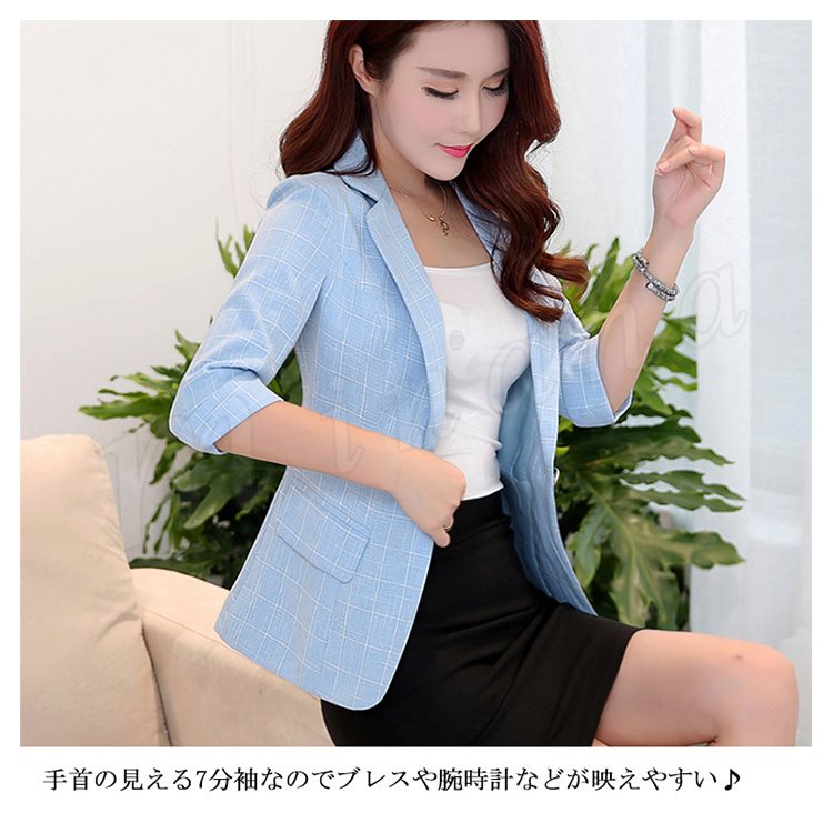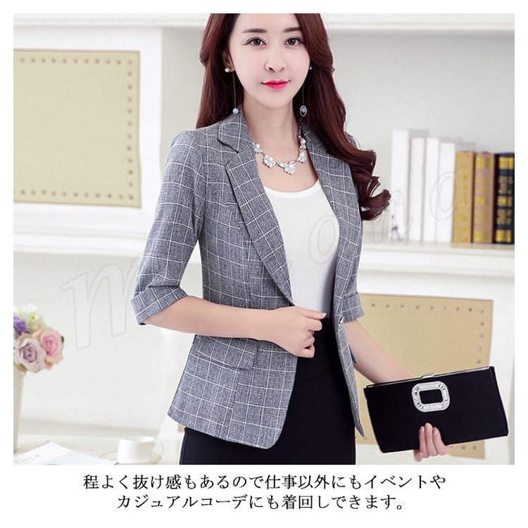 チェック柄ジャケット 大きサイズ テーラードジャケット 七分袖 レディース アウター テーラード ジャケット チェック柄 シンプル オフィス 通勤 カ