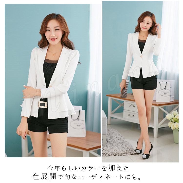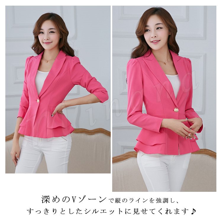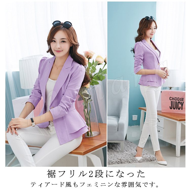 ティアードフリルのフェミニンシルエット!テーラードジャケット レディース アウター コート ティアード スリル aライン テーラード ジャケット 通勤
